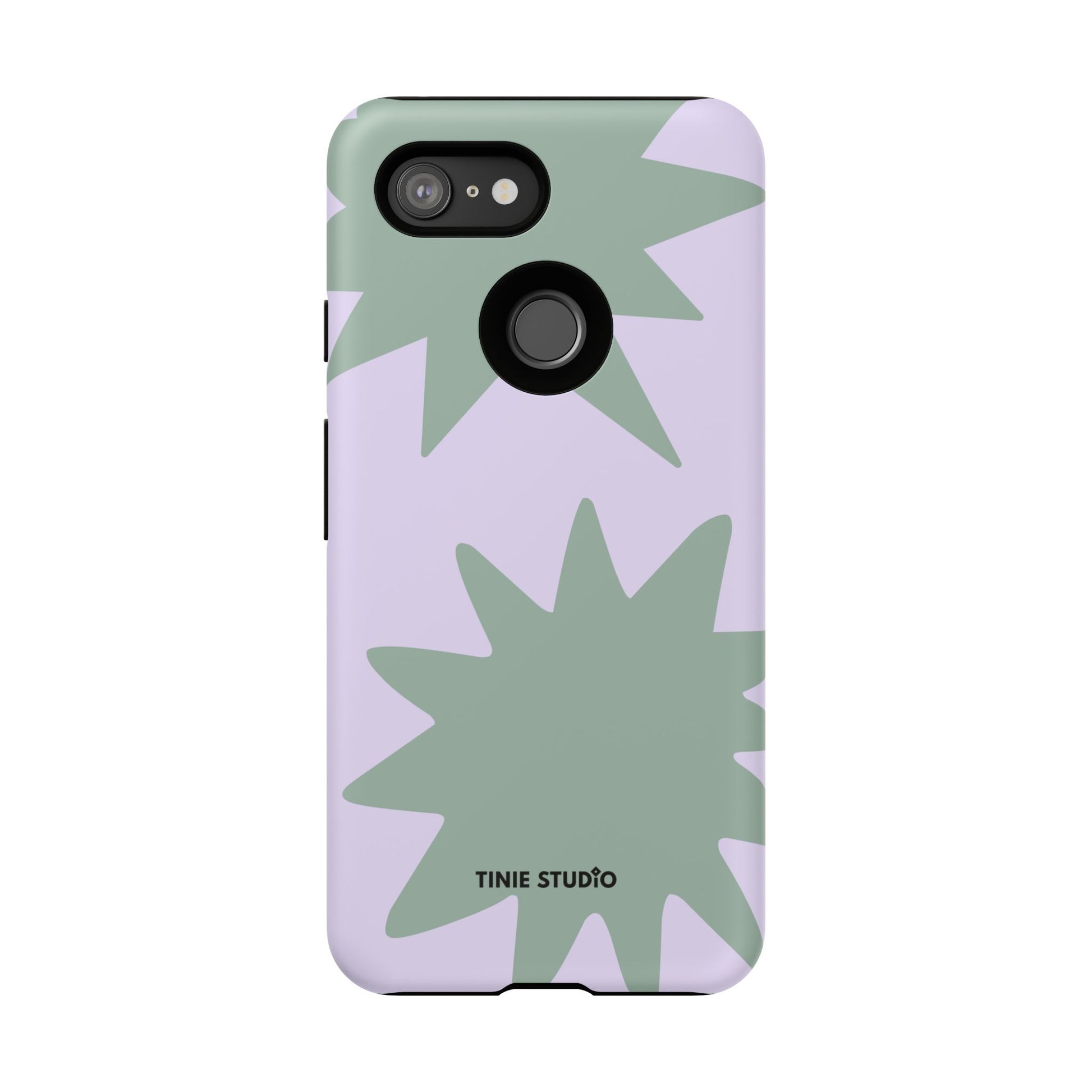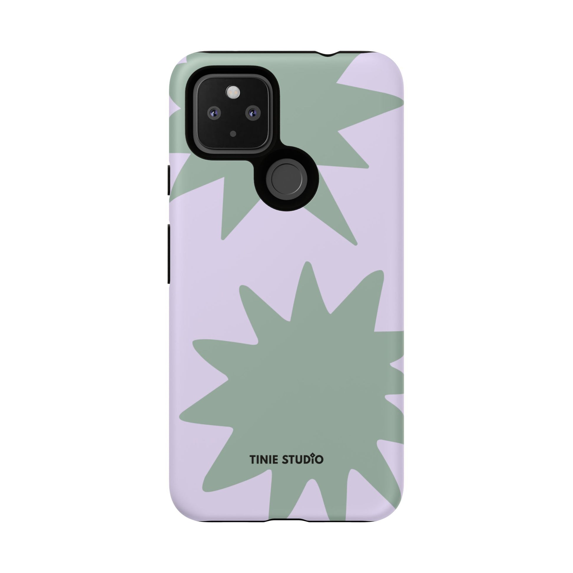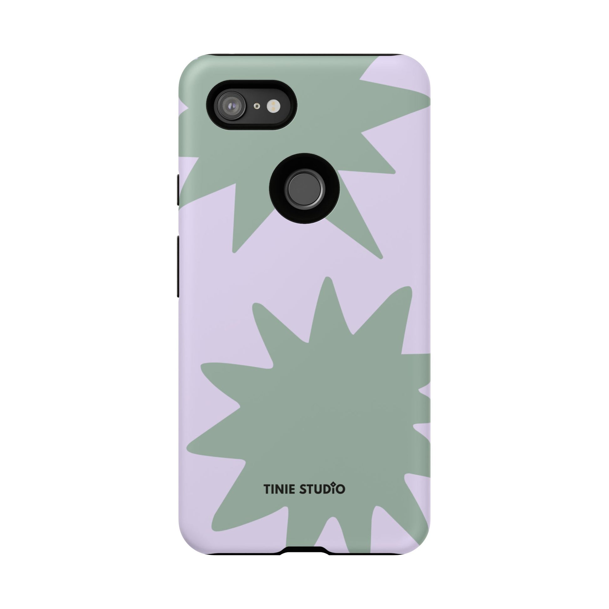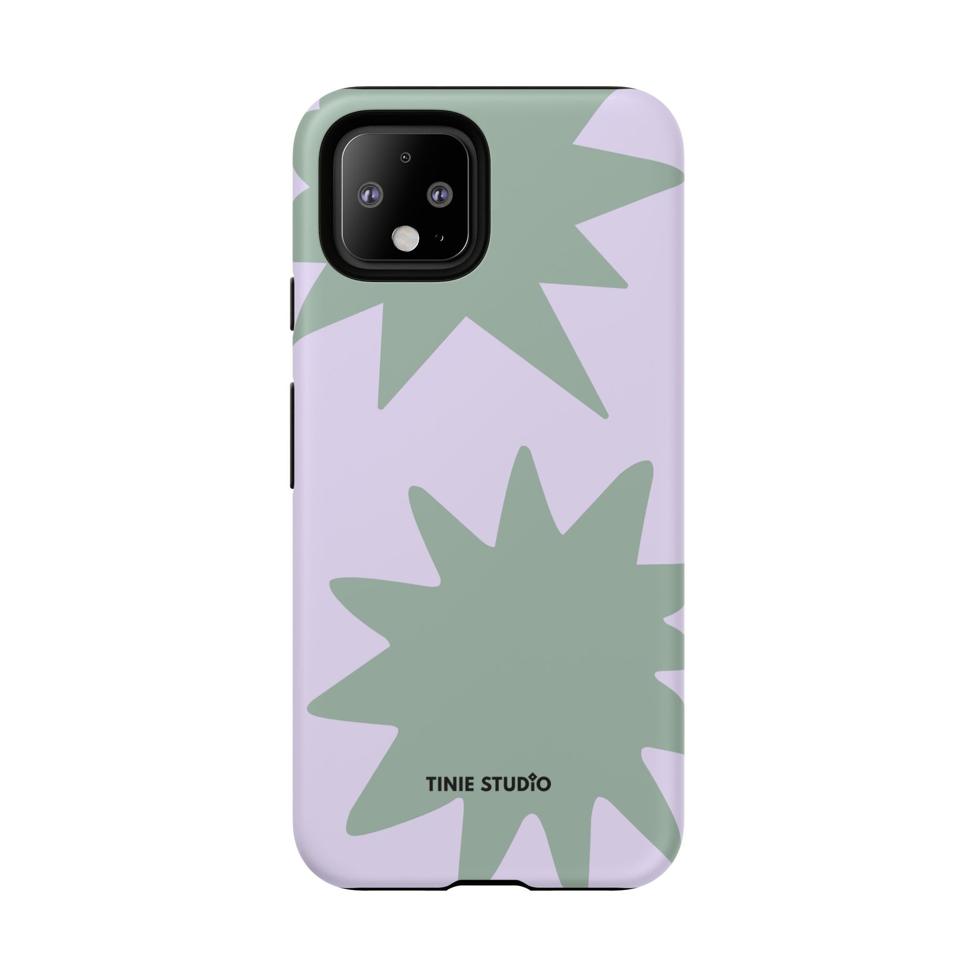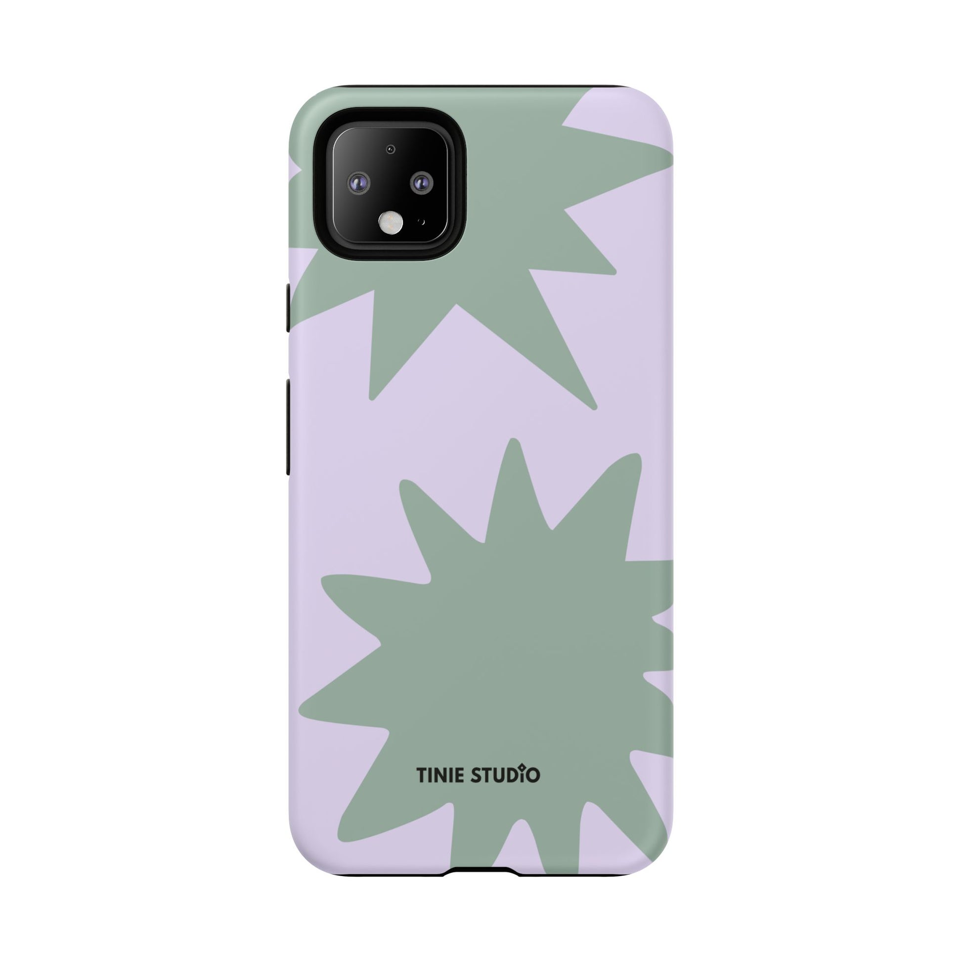Dieses Design verteilt übergroße sternförmige Motive in Salbeigrün auf einem zarten Lavendelhintergrund – ein spannender Mix aus ruhigen Farben und kräftigen Formen. Grafisch und trotzdem luftig – perfekt, um deinem Outfit ein bisschen funkelnden Spaß zu geben, ohne den minimalistischen Style zu verlieren.