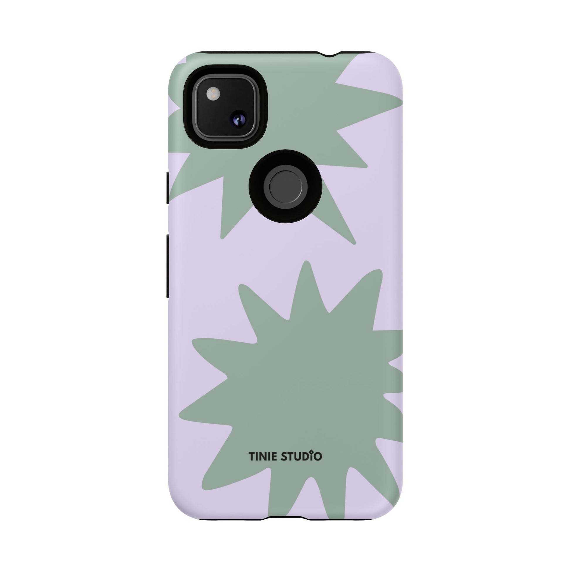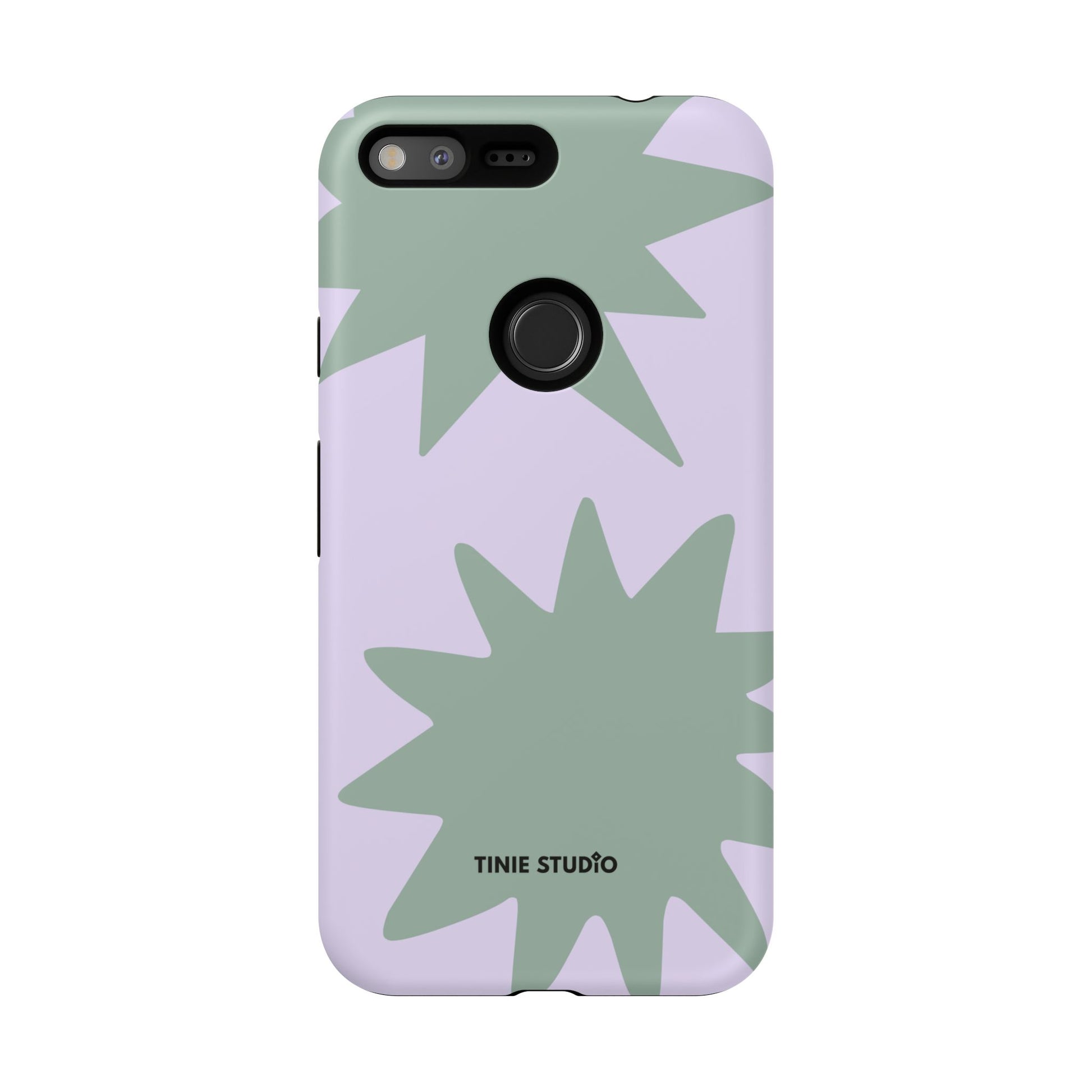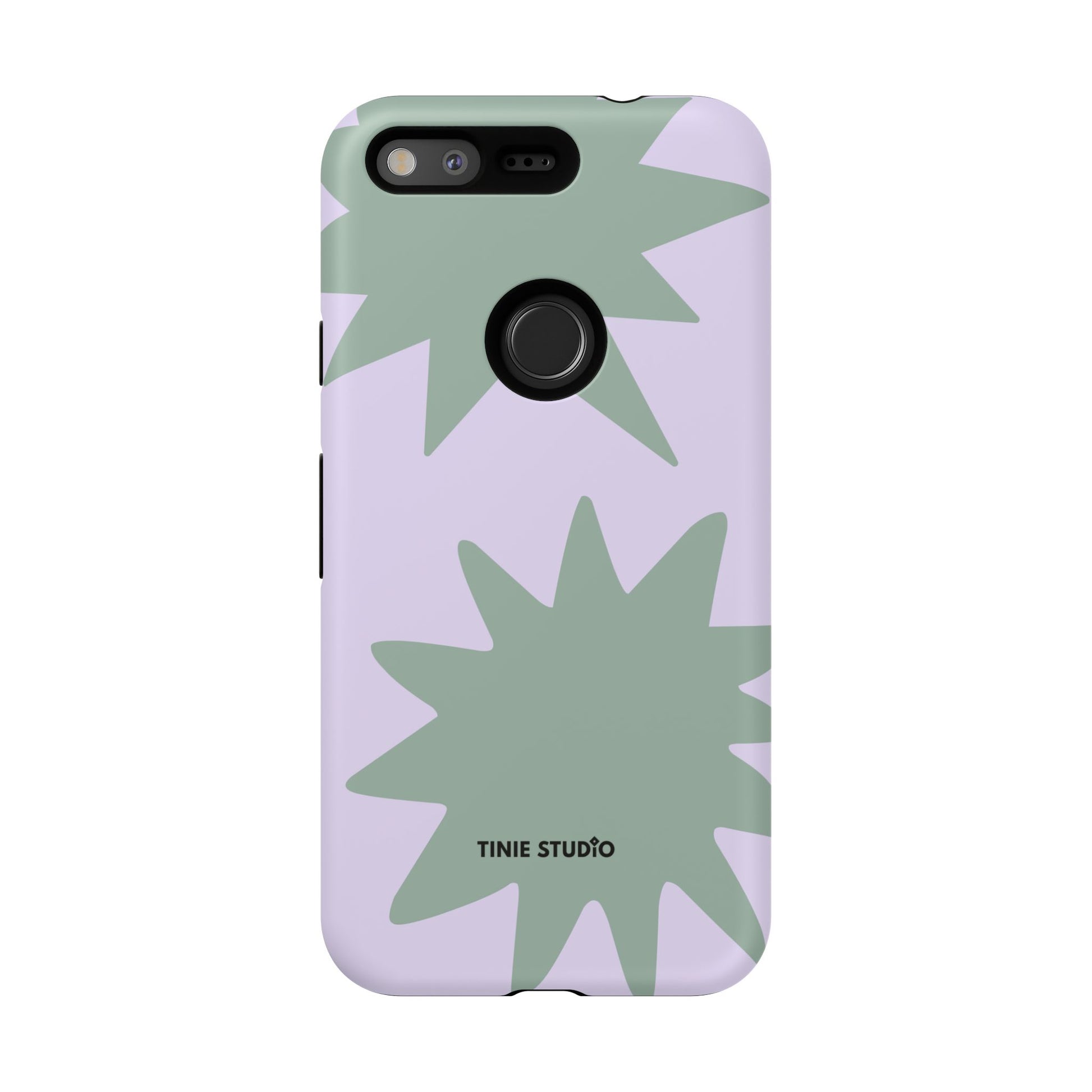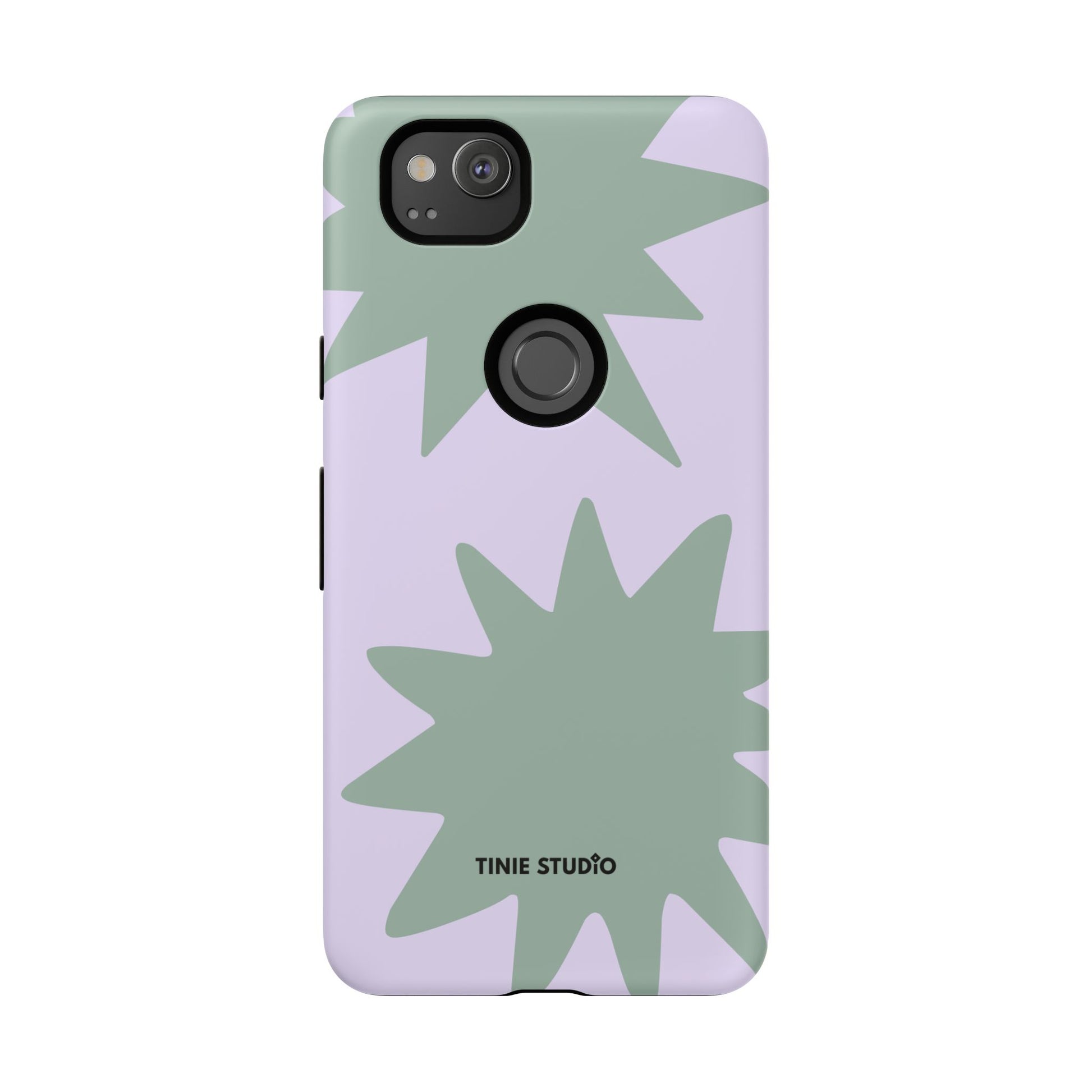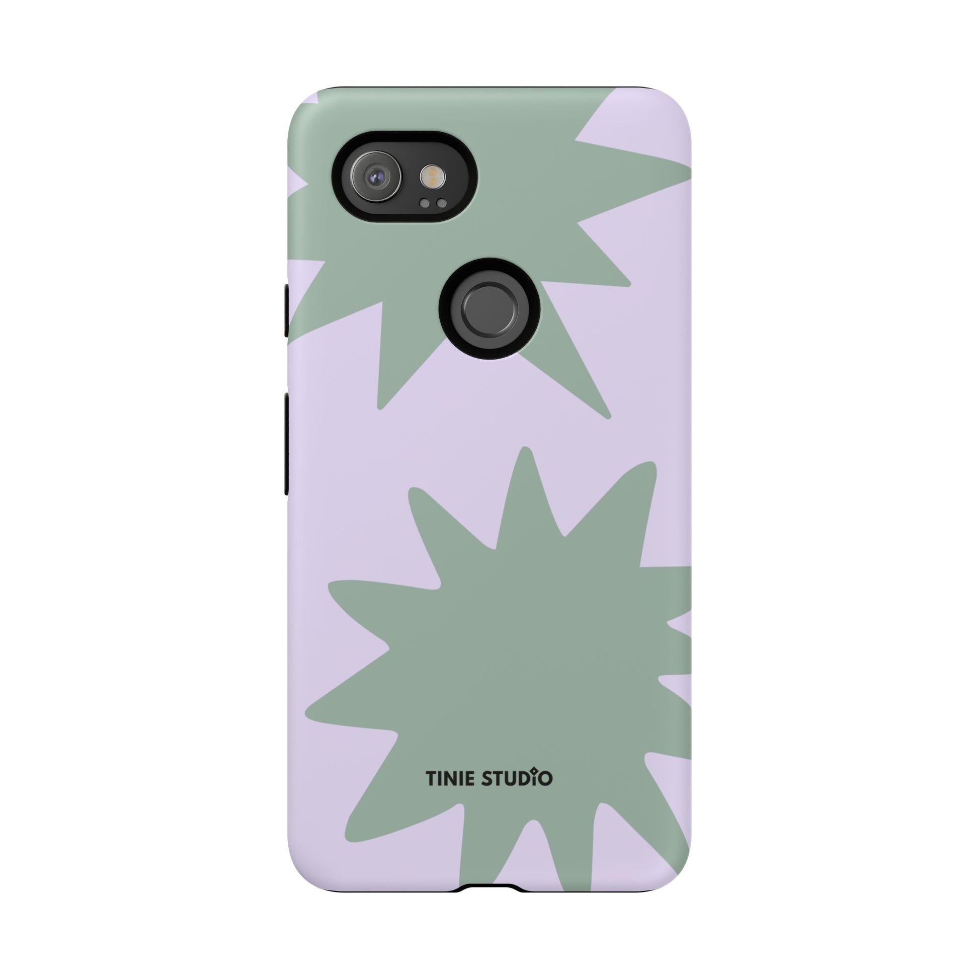 Dieses Design verteilt übergroße sternförmige Motive in Salbeigrün auf einem zarten Lavendelhintergrund – ein spannender Mix aus ruhigen Farben und kräftigen Formen. Grafisch und trotzdem luftig – perfekt, um deinem Outfit ein bisschen funkelnden Spaß zu geben, ohne den minimalistischen Style zu verlieren.