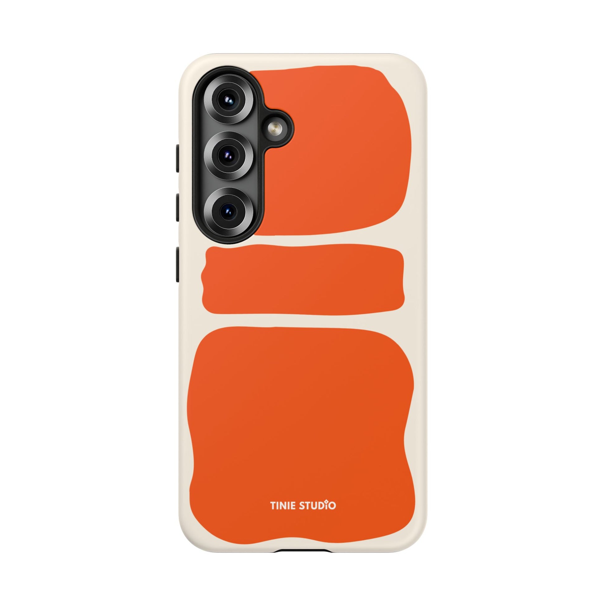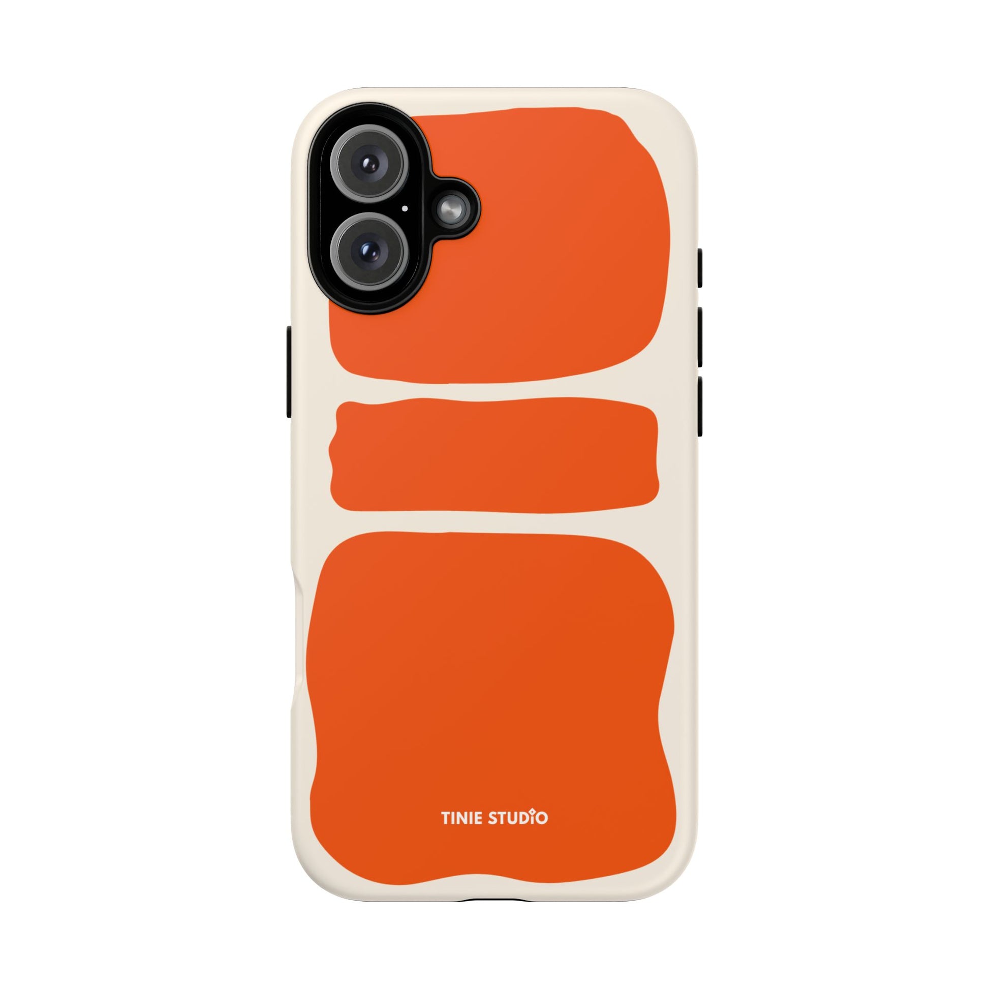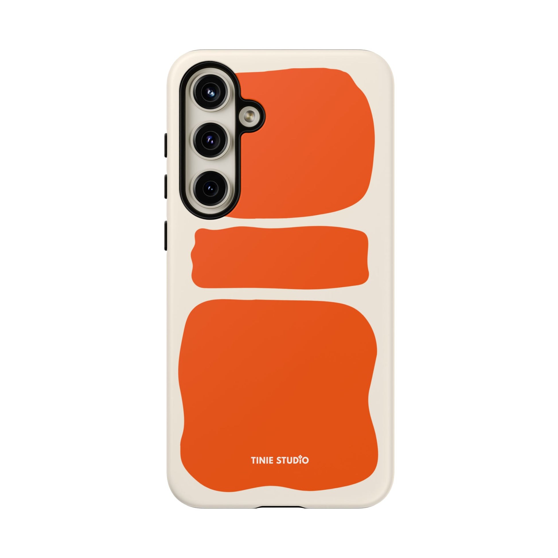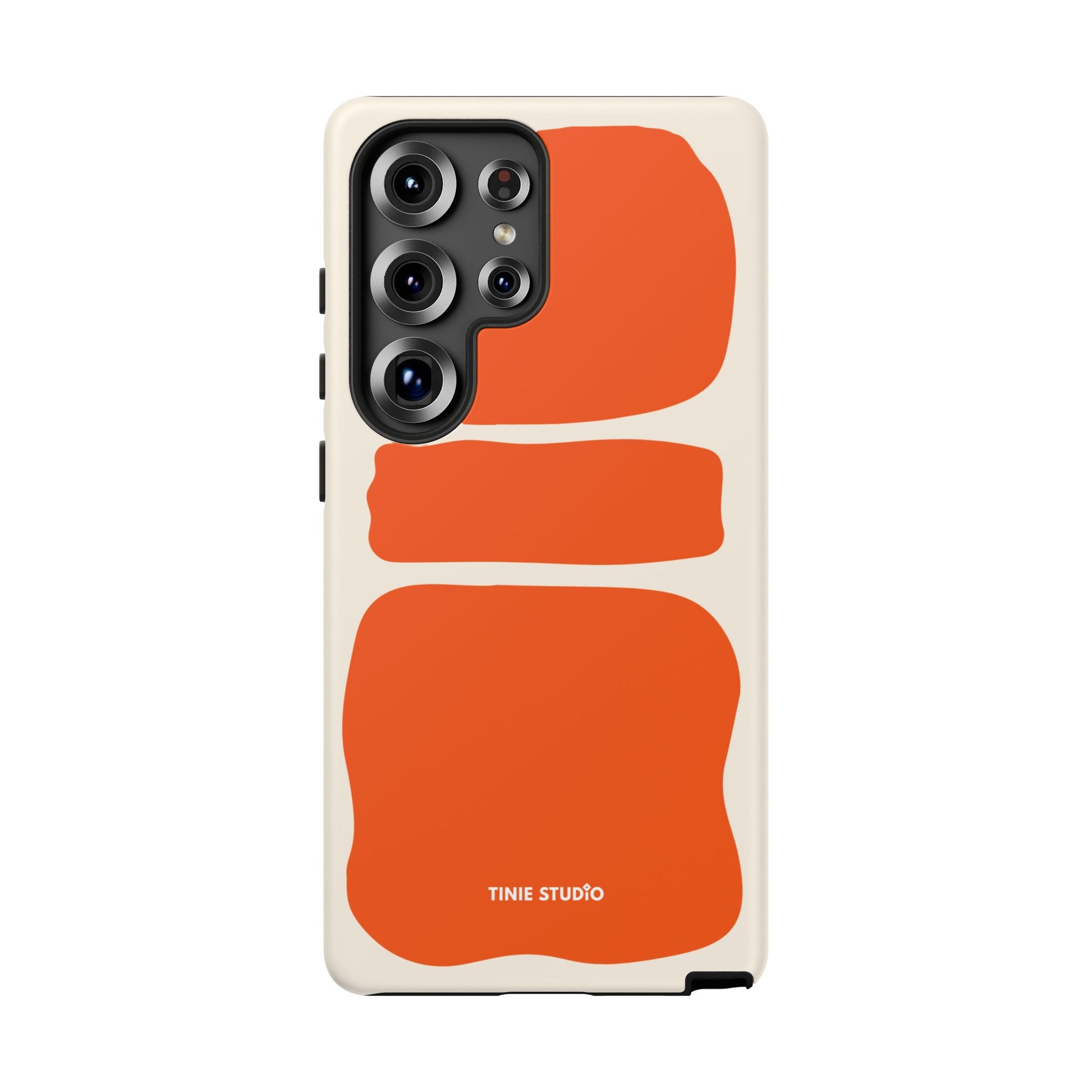 Dieses Design spielt mit großen, handgemalt wirkenden Flächen in sattem Orange auf sanftem Creme-Hintergrund und trifft damit eine gekonnte Balance zwischen verspielt und elegant. Organisch und trotzdem grafisch – fast wie ein modernes Kunstposter, das jeden Look aufwertet.