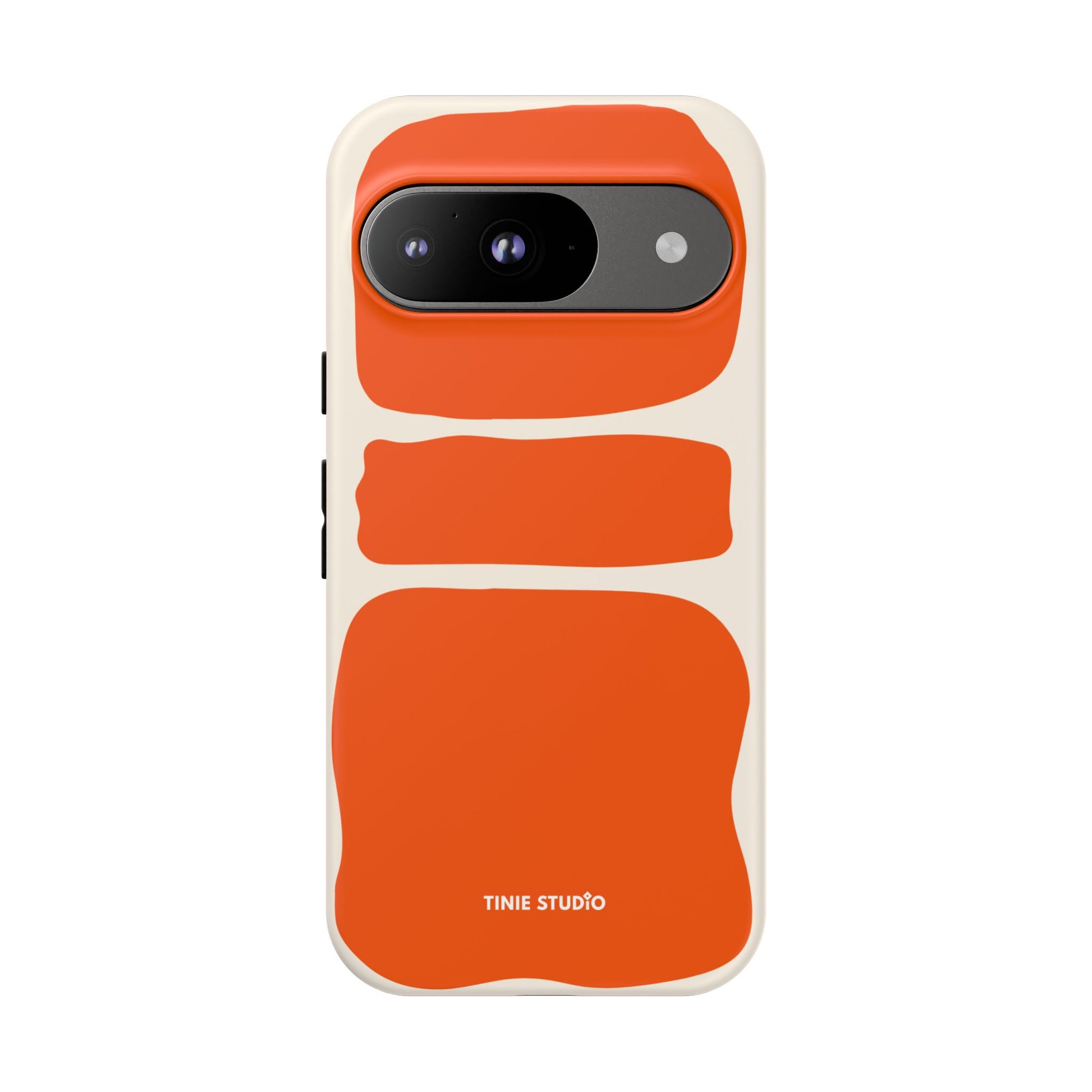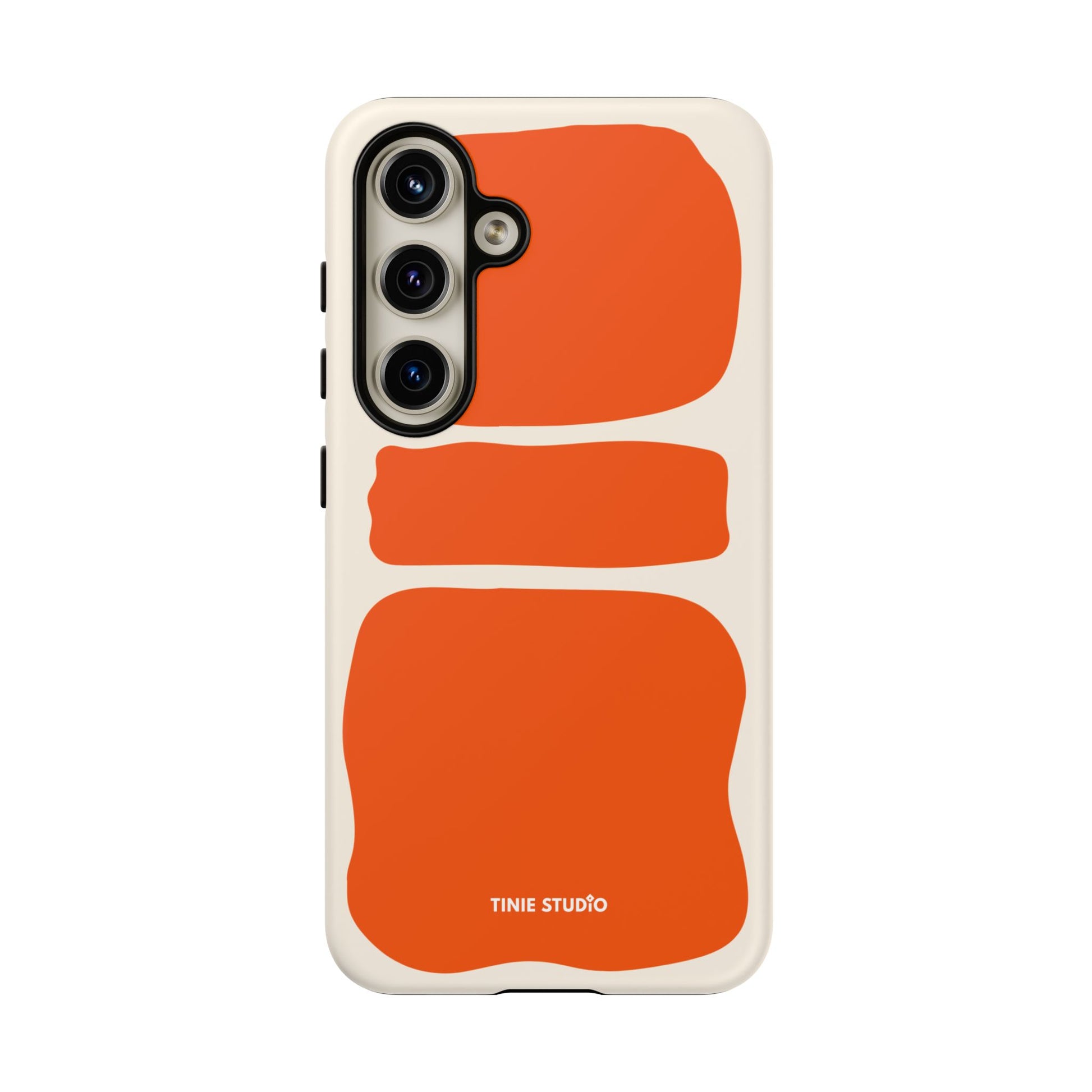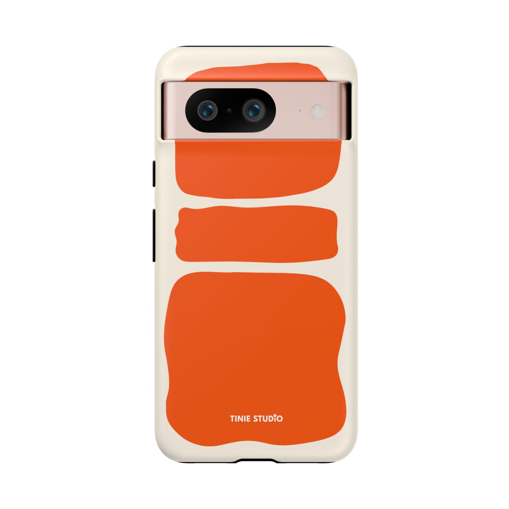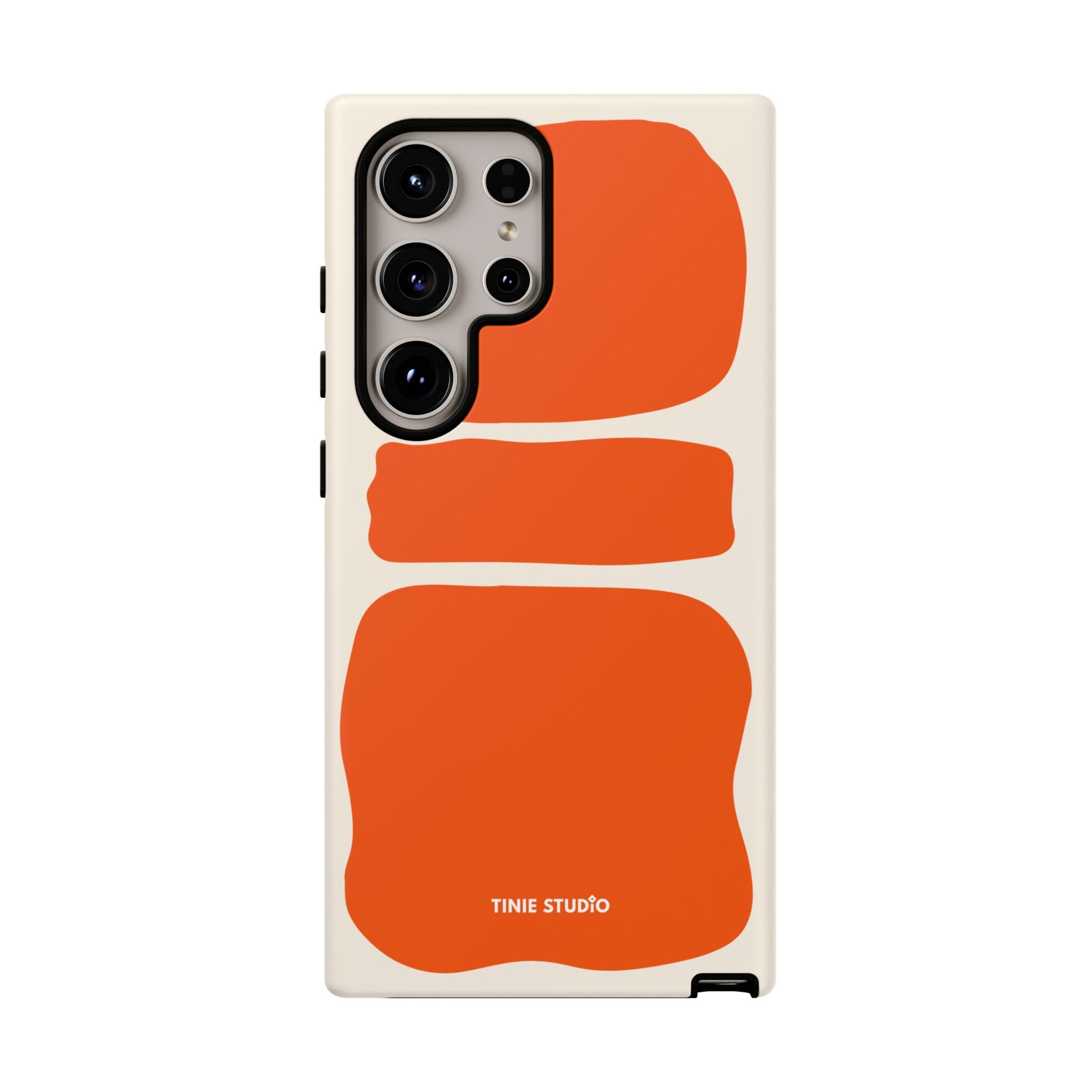 Dieses Design spielt mit großen, handgemalt wirkenden Flächen in sattem Orange auf sanftem Creme-Hintergrund und trifft damit eine gekonnte Balance zwischen verspielt und elegant. Organisch und trotzdem grafisch – fast wie ein modernes Kunstposter, das jeden Look aufwertet.
