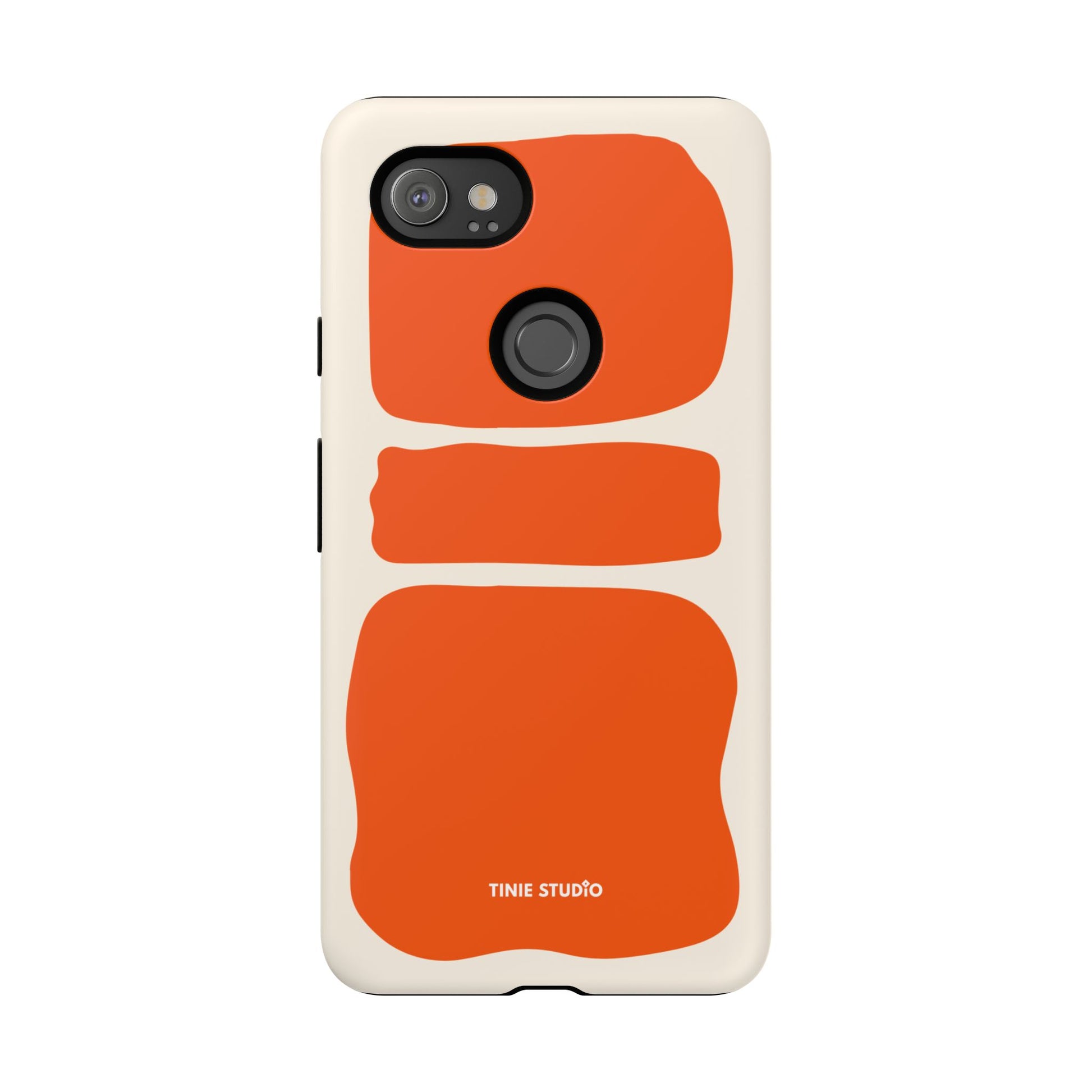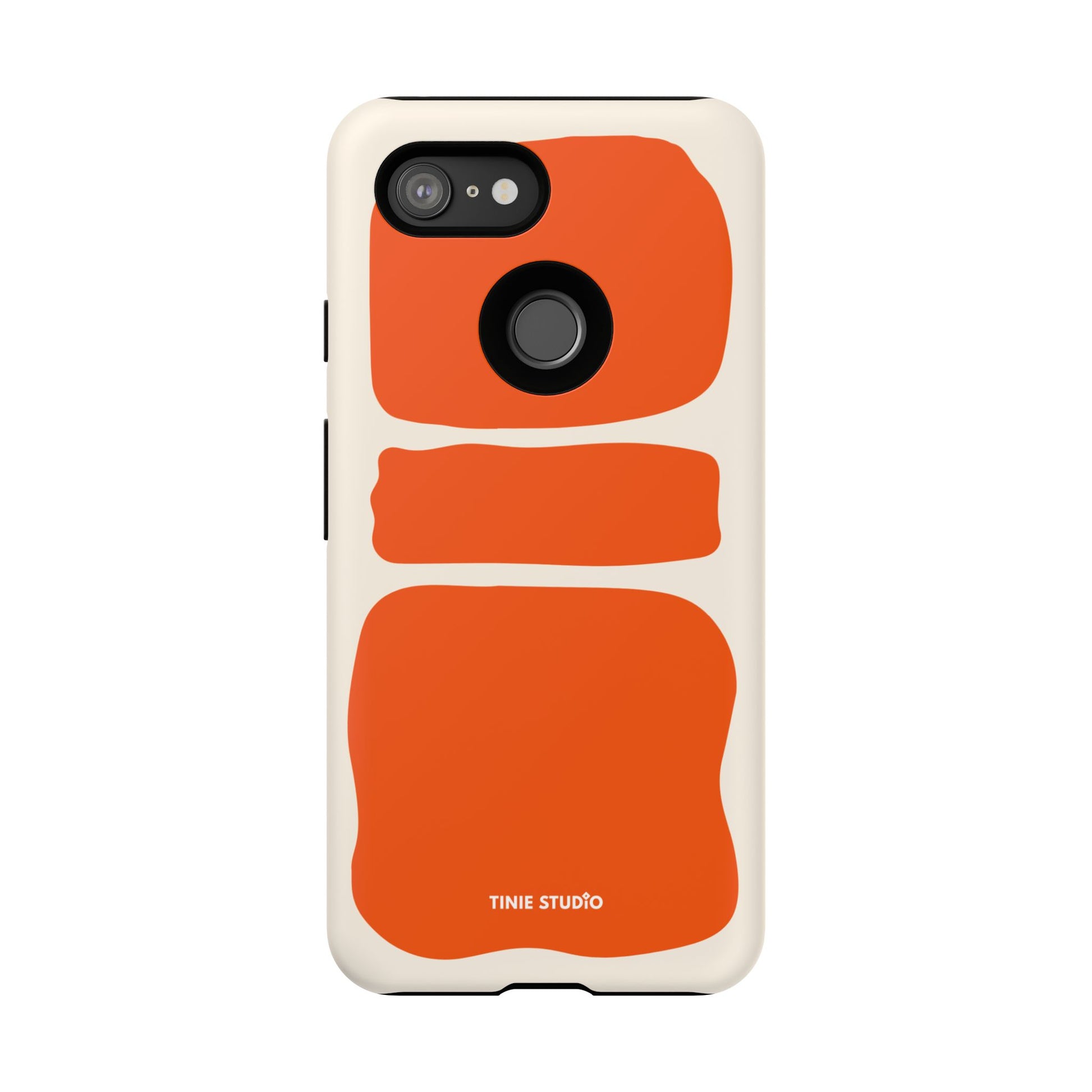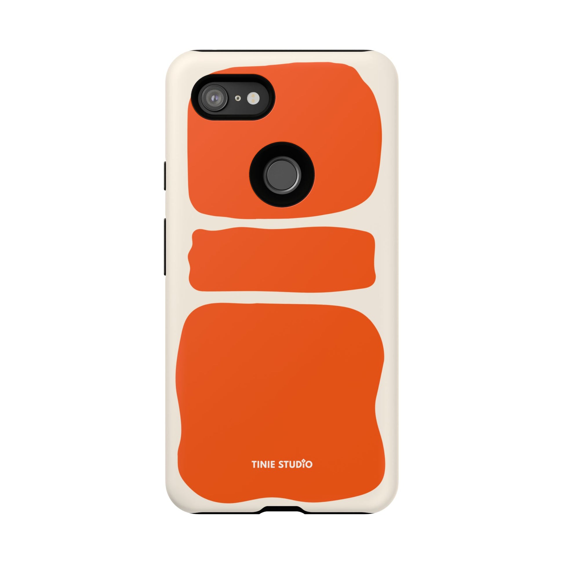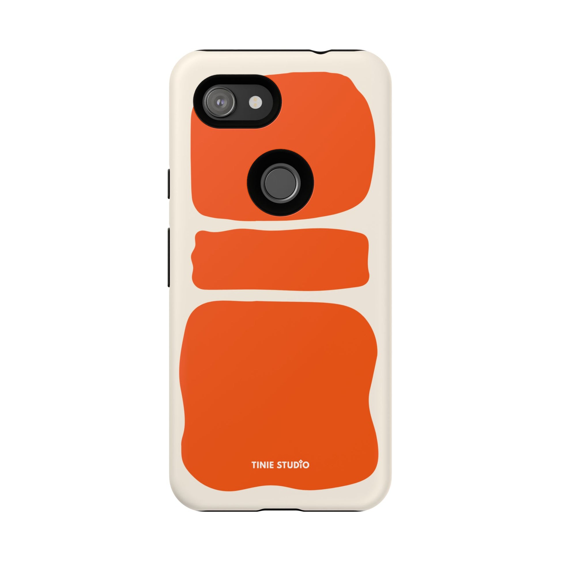 Dieses Design spielt mit großen, handgemalt wirkenden Flächen in sattem Orange auf sanftem Creme-Hintergrund und trifft damit eine gekonnte Balance zwischen verspielt und elegant. Organisch und trotzdem grafisch – fast wie ein modernes Kunstposter, das jeden Look aufwertet.