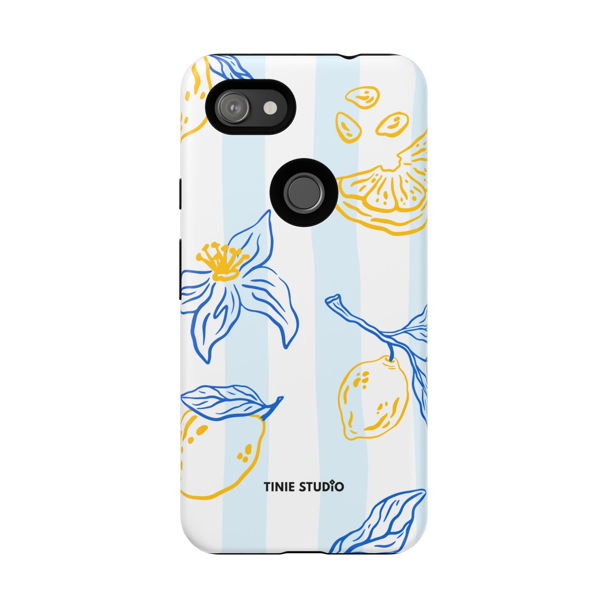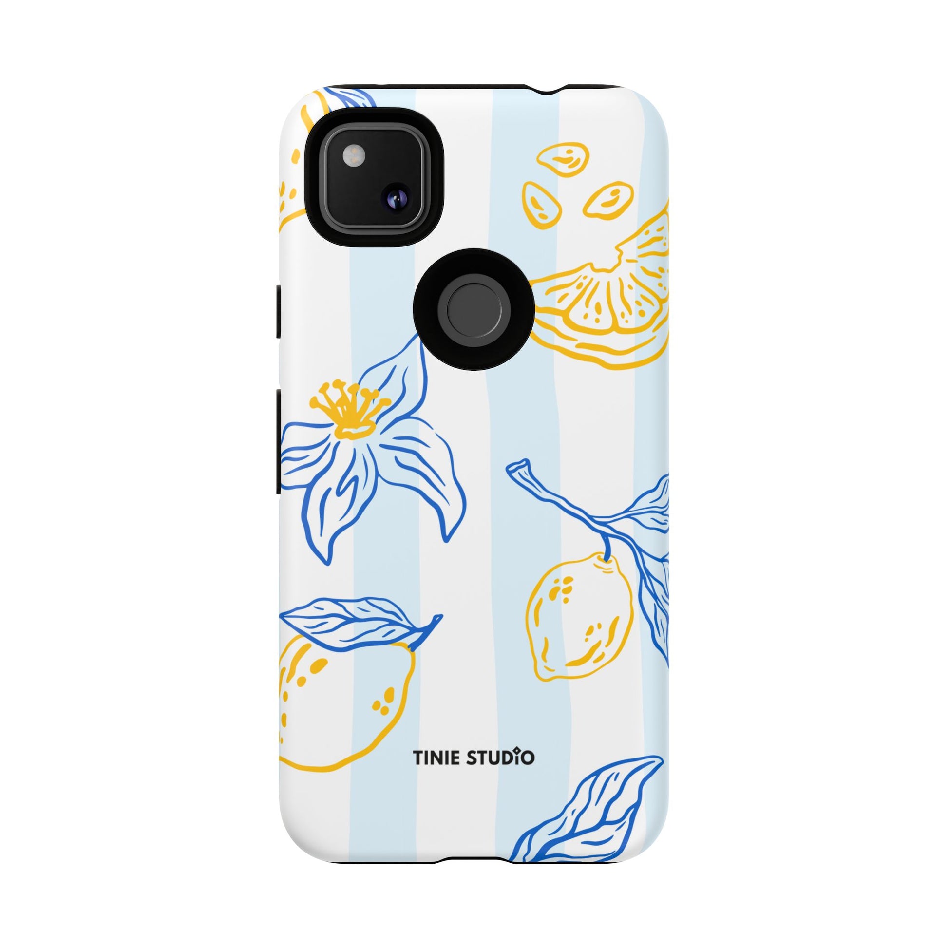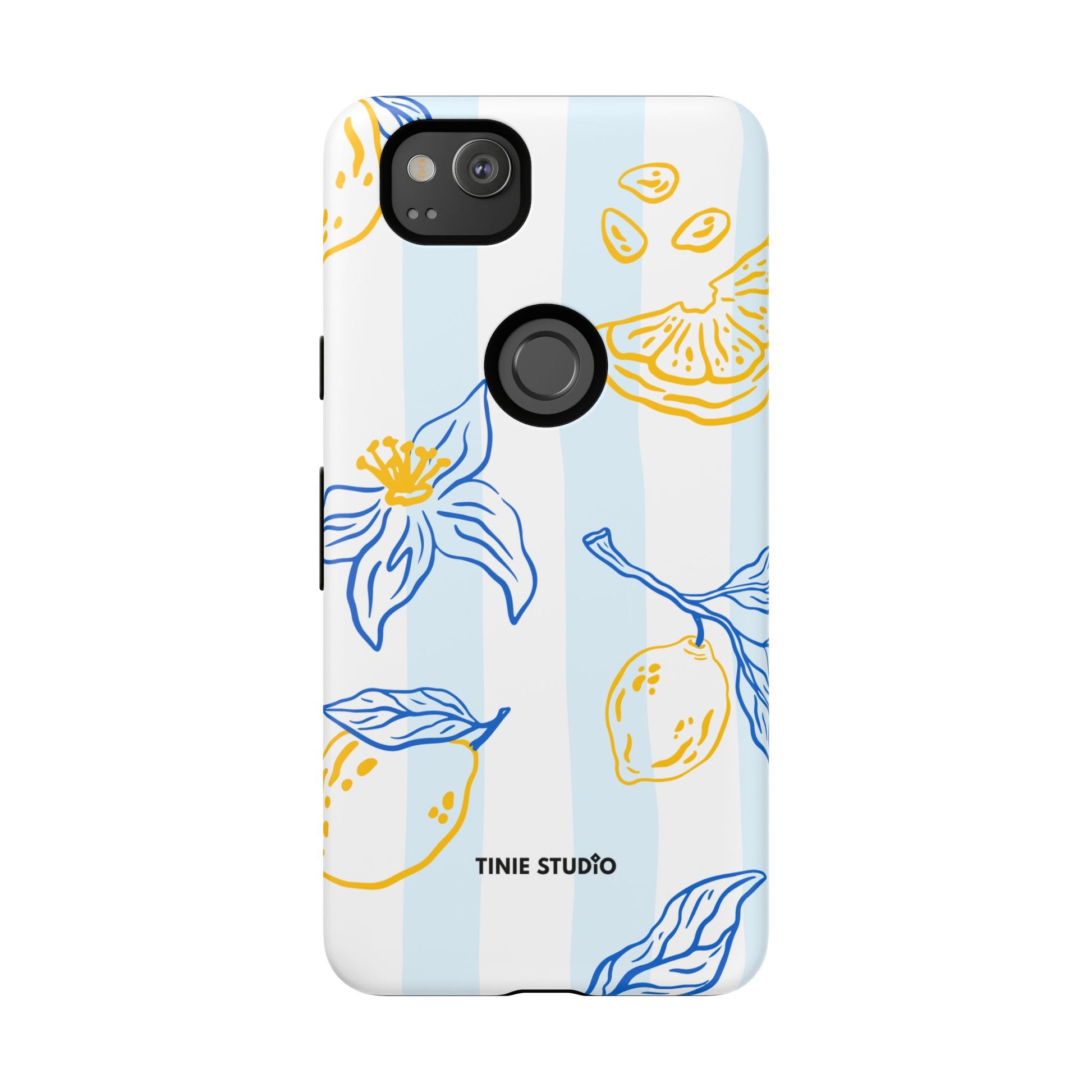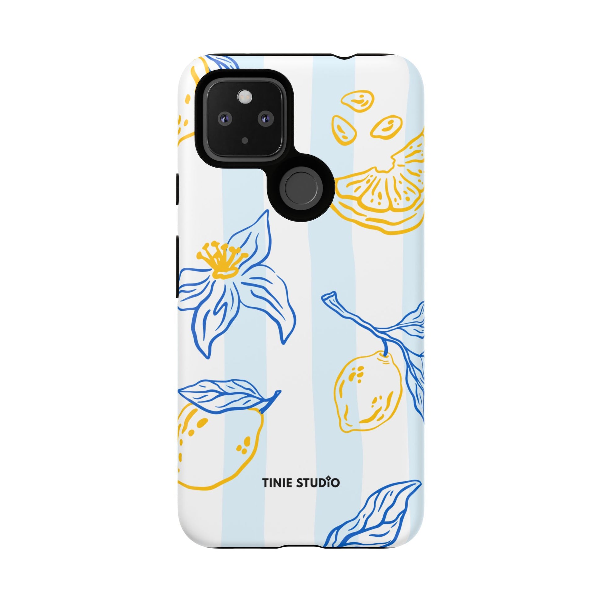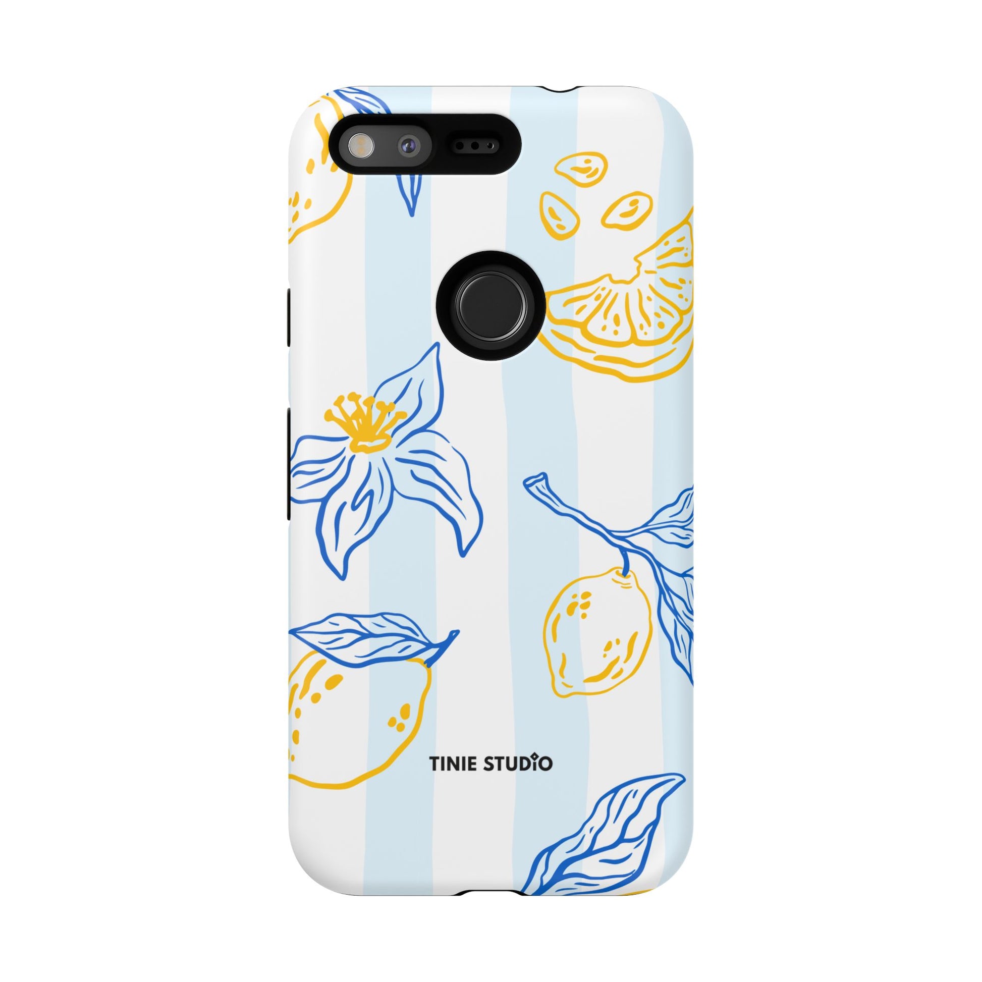 This design blends soft blue stripes with hand-drawn lemons, blossoms, and seeds in golden yellow and cobalt. It’s light, zesty, and breezy - like carrying a slice of summer with you wherever you go.
