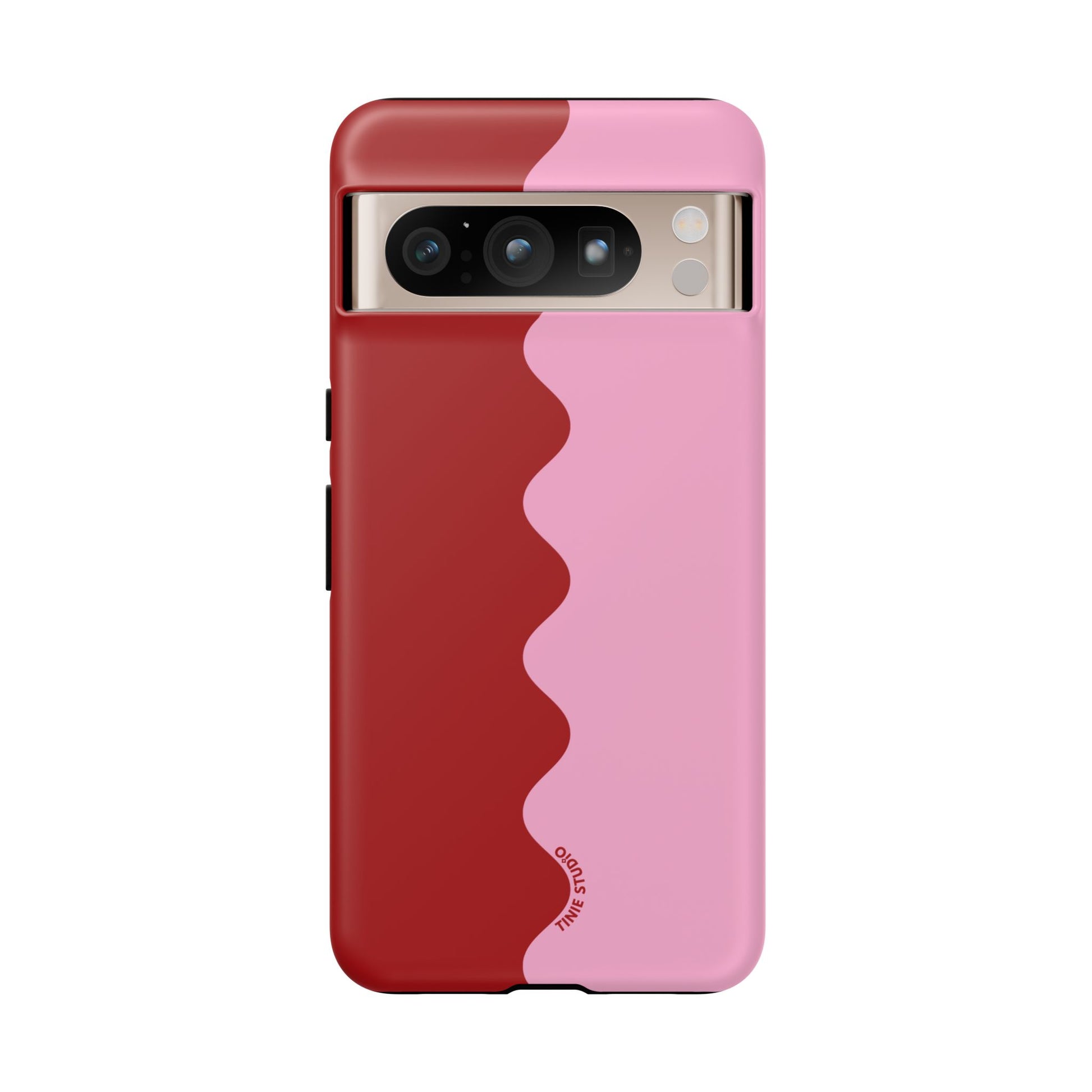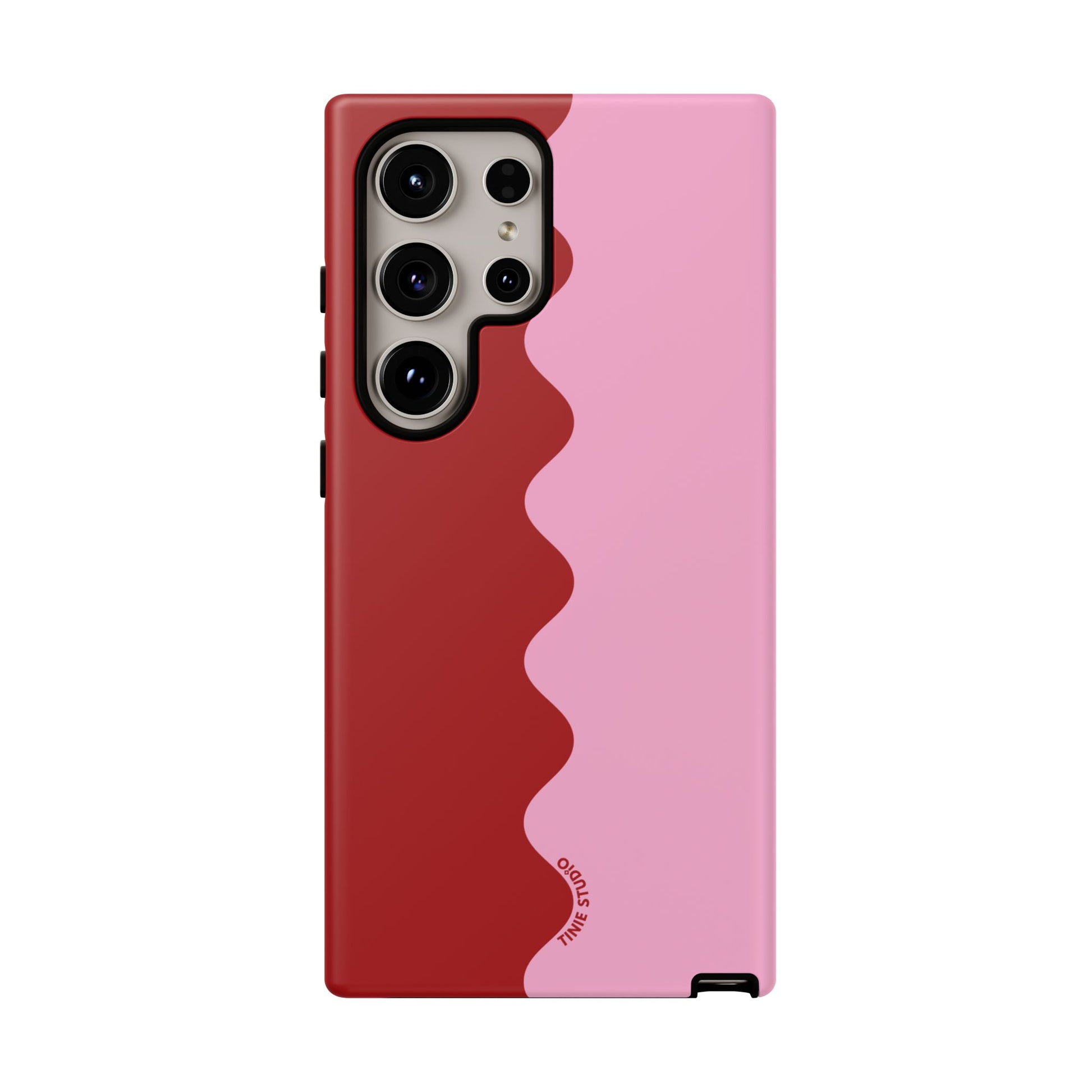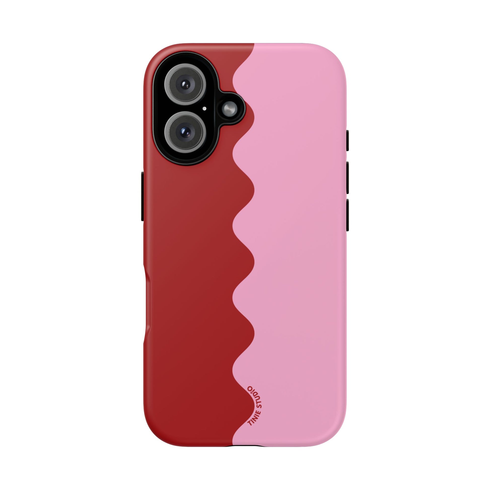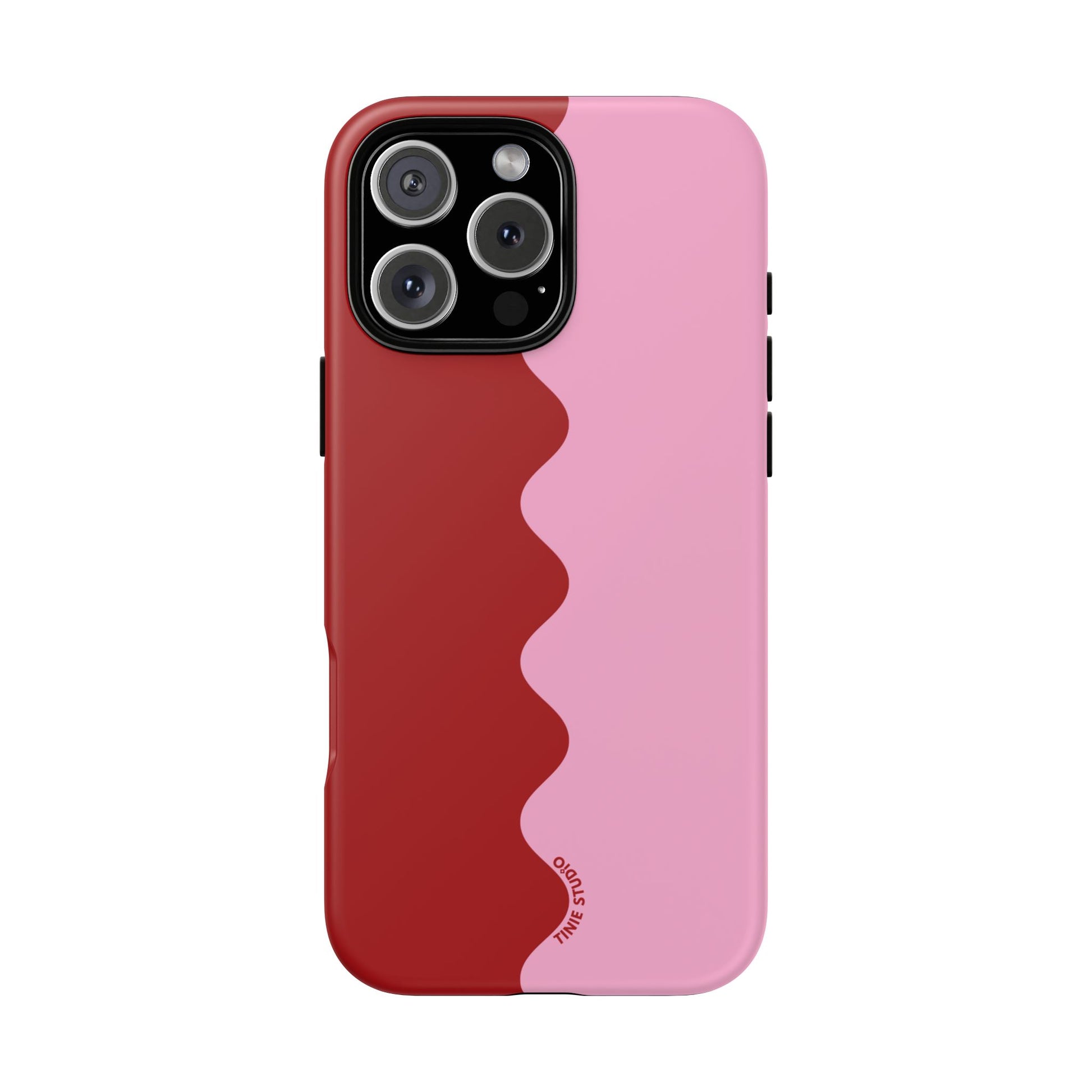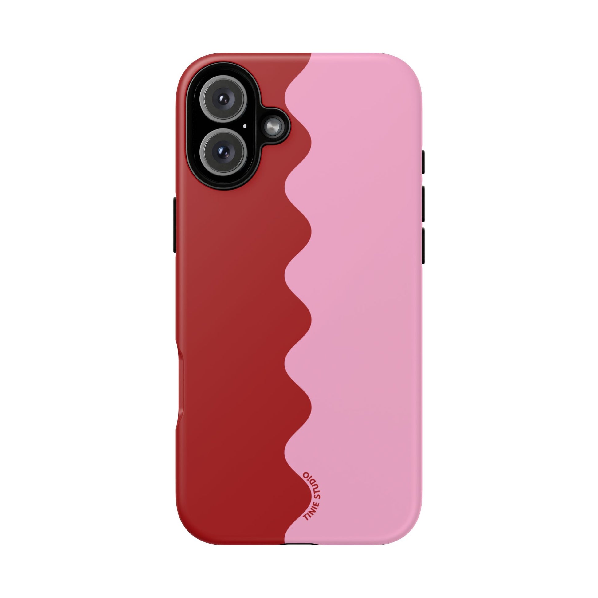 This design is all about contrast - rich red meets soft pink in a clean wave. No clutter, no noise, just confident colour, smooth lines and a high-end feel.