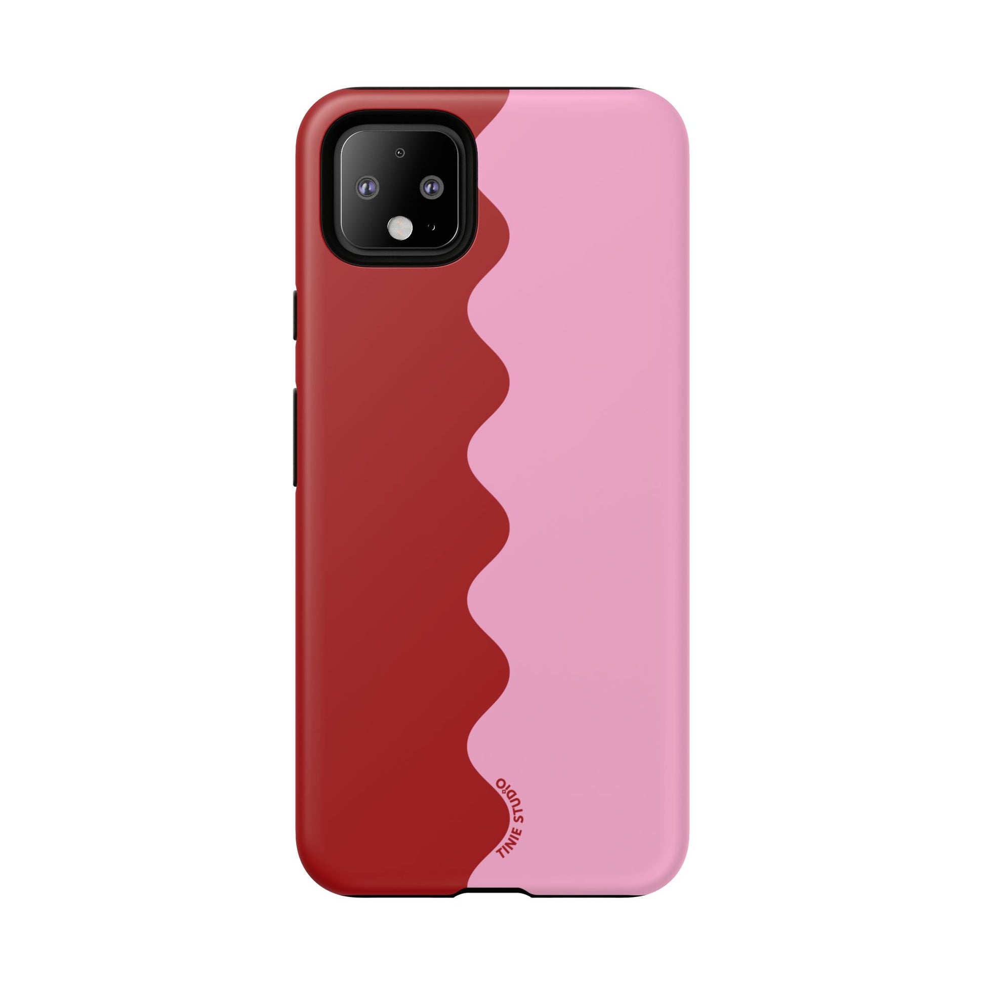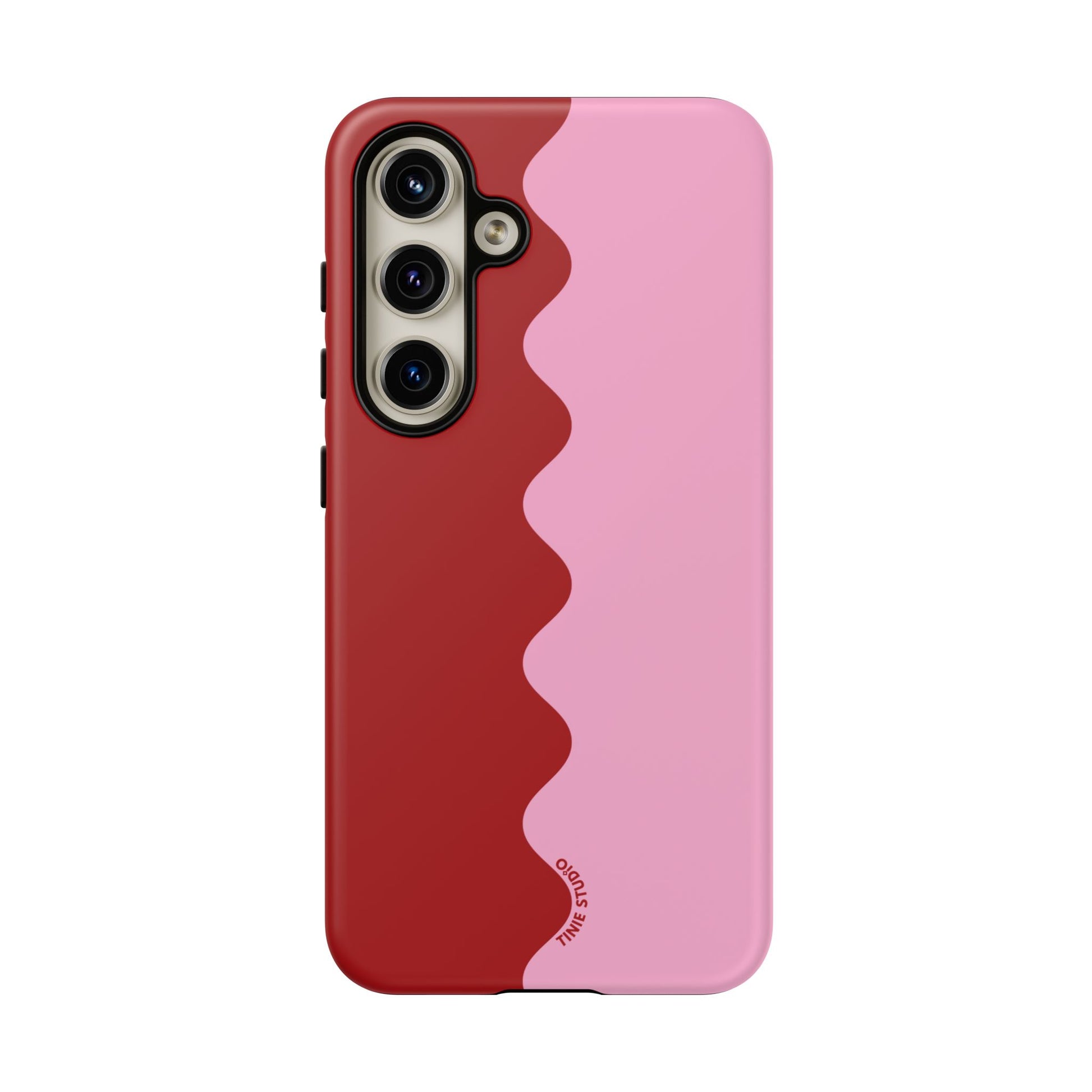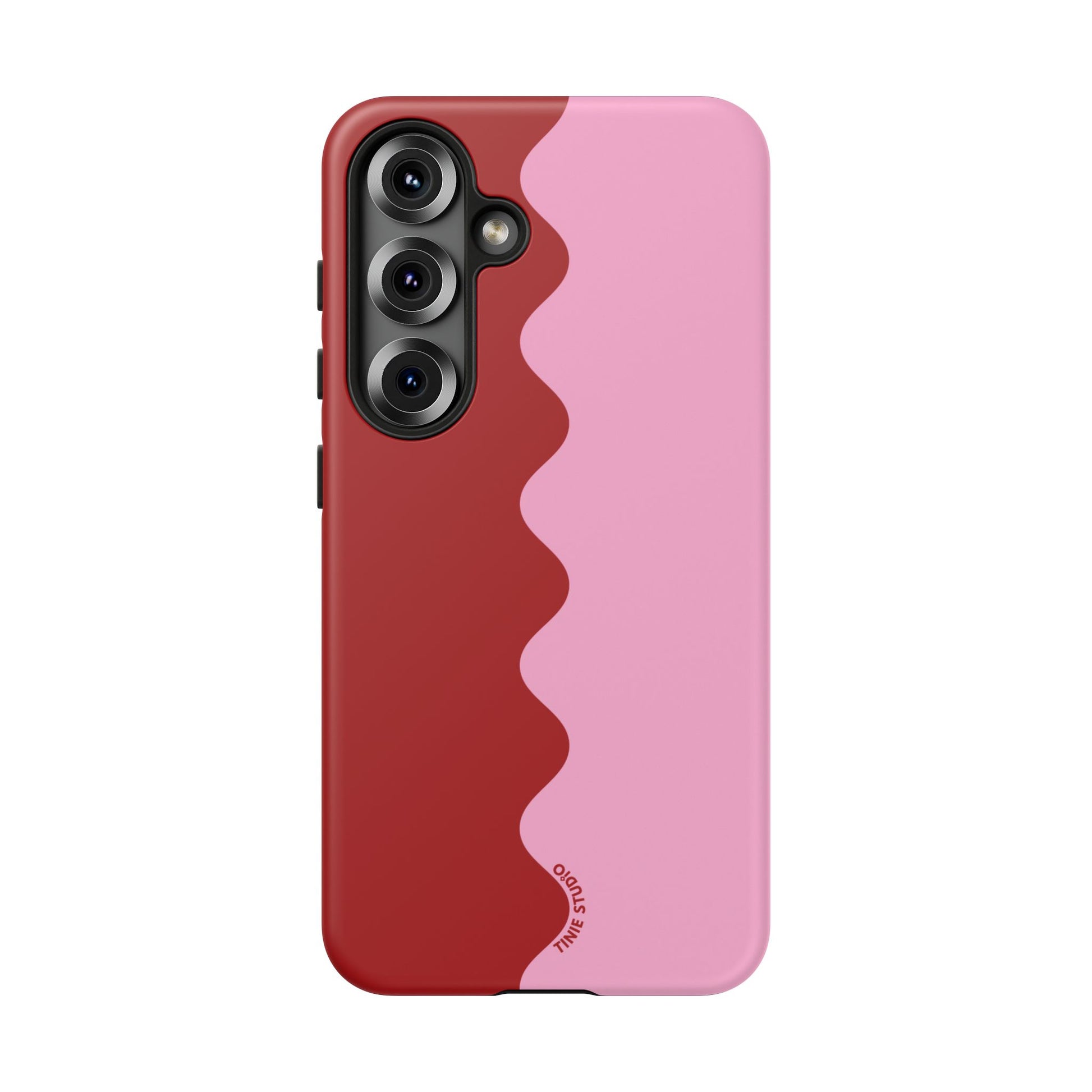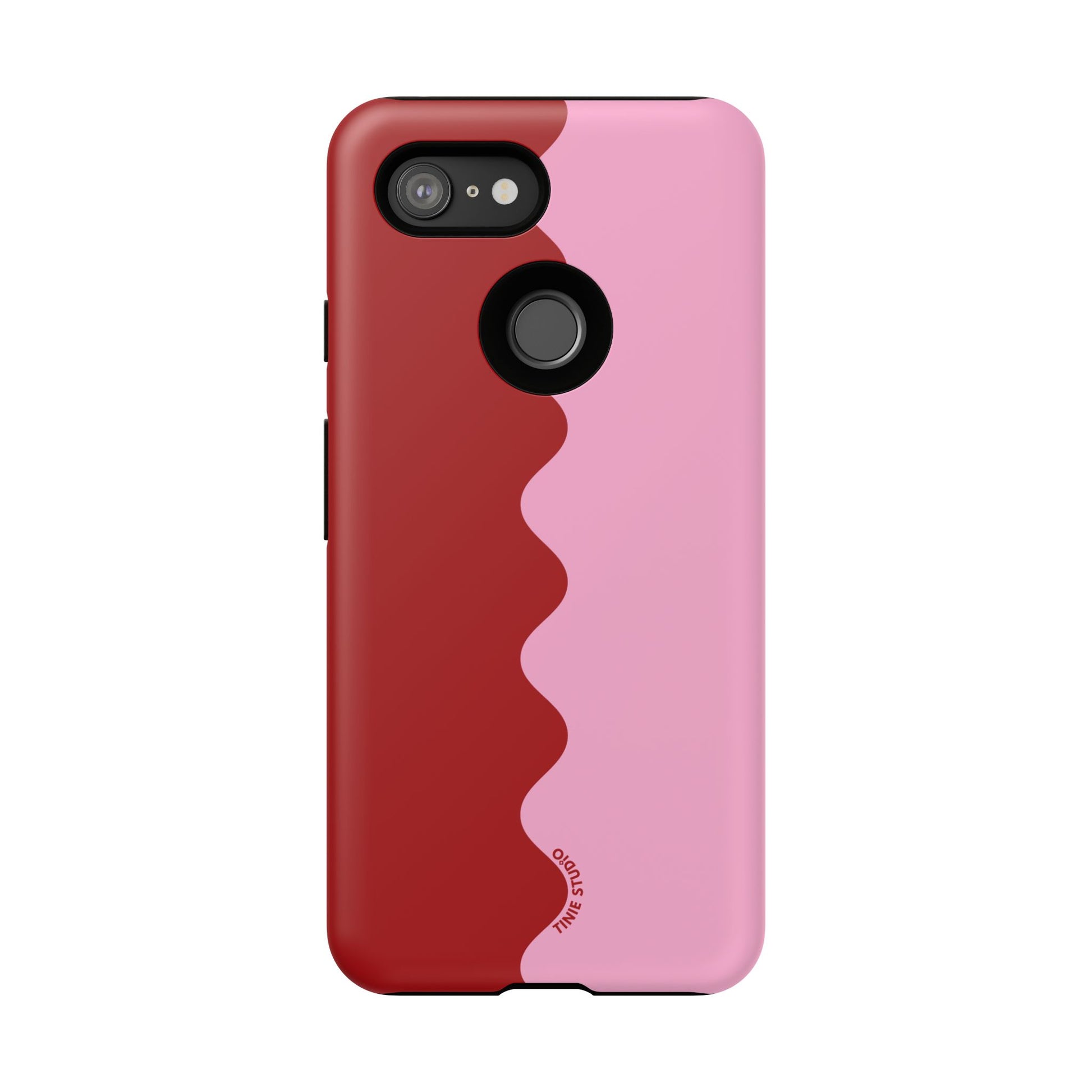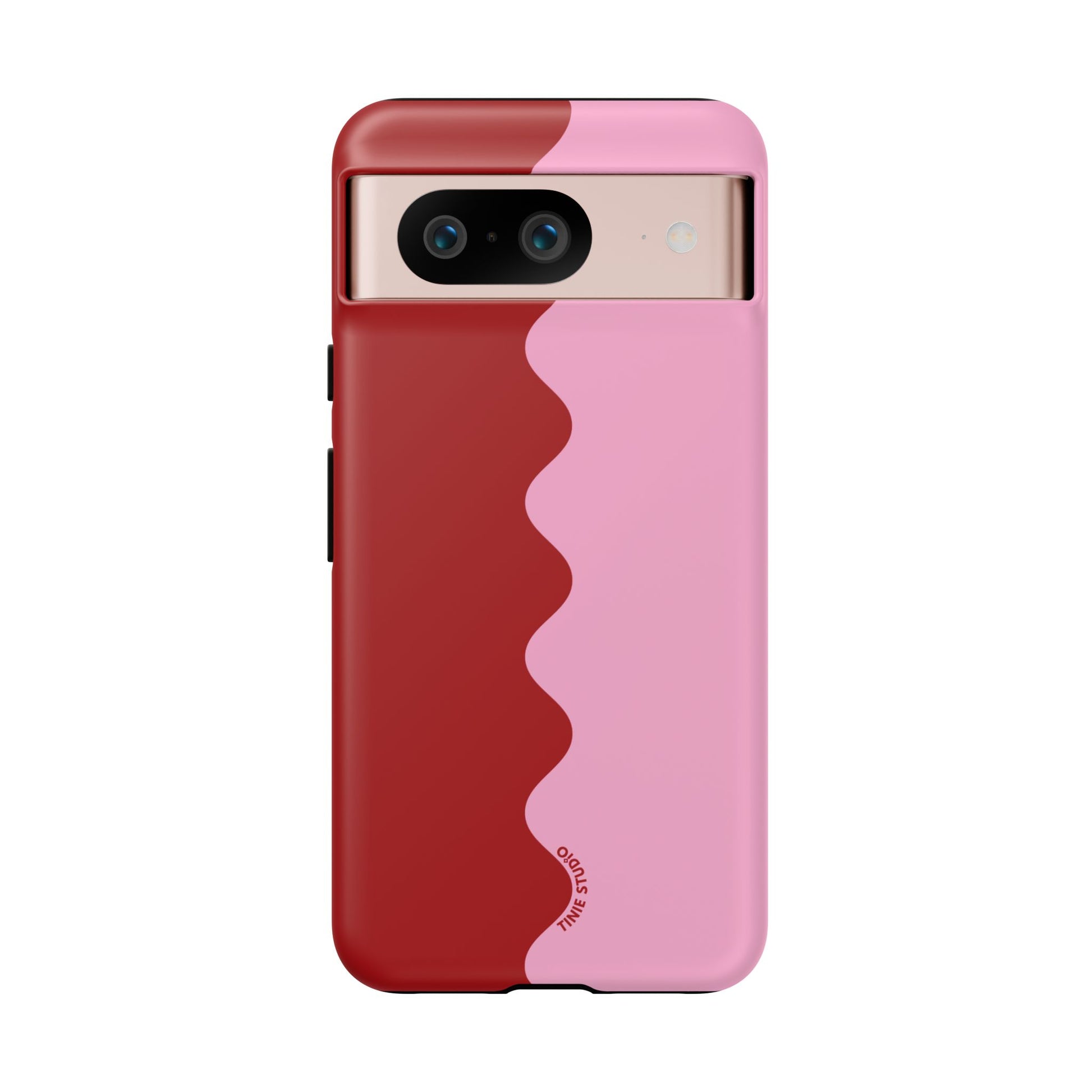 This design is all about contrast - rich red meets soft pink in a clean wave. No clutter, no noise, just confident colour, smooth lines and a high-end feel.