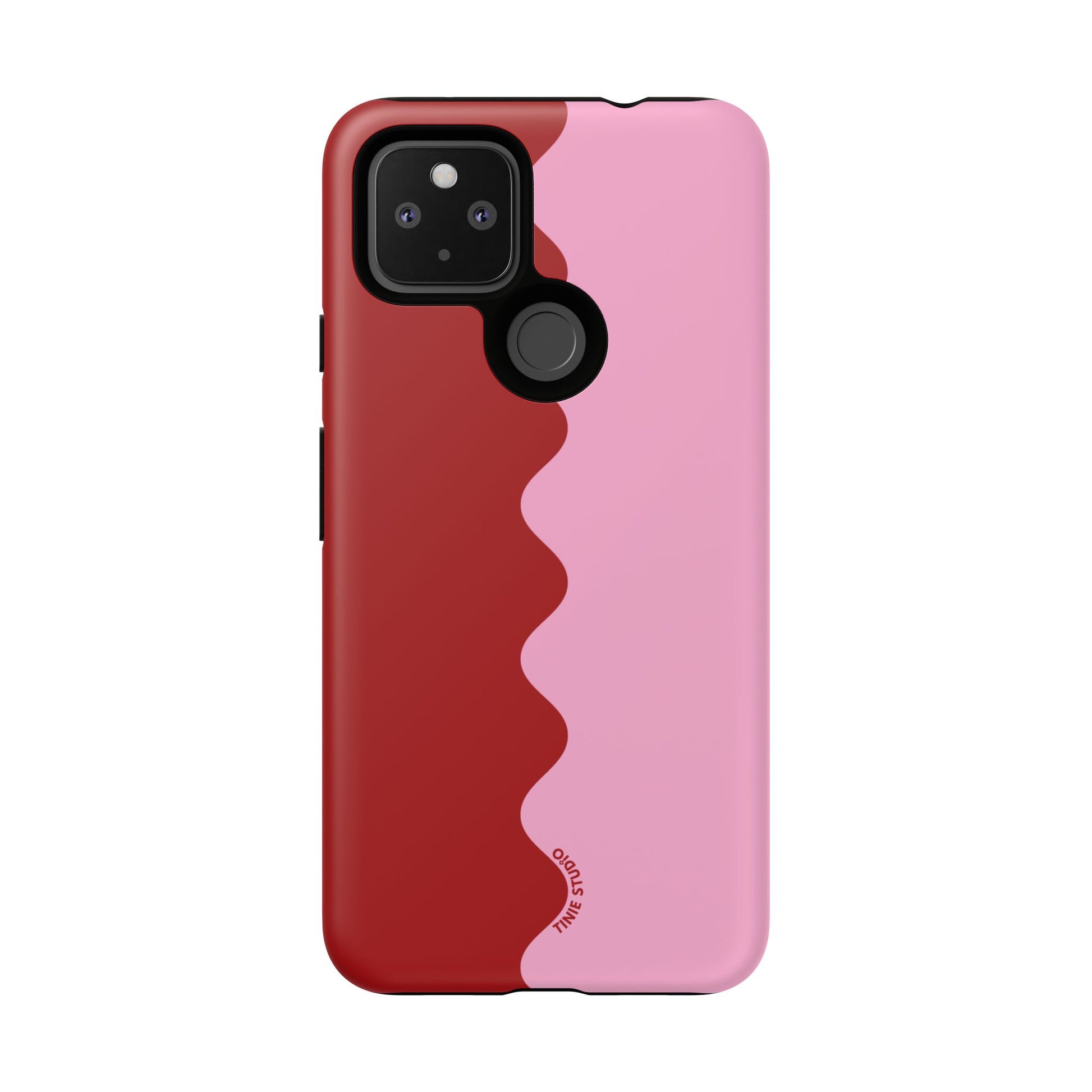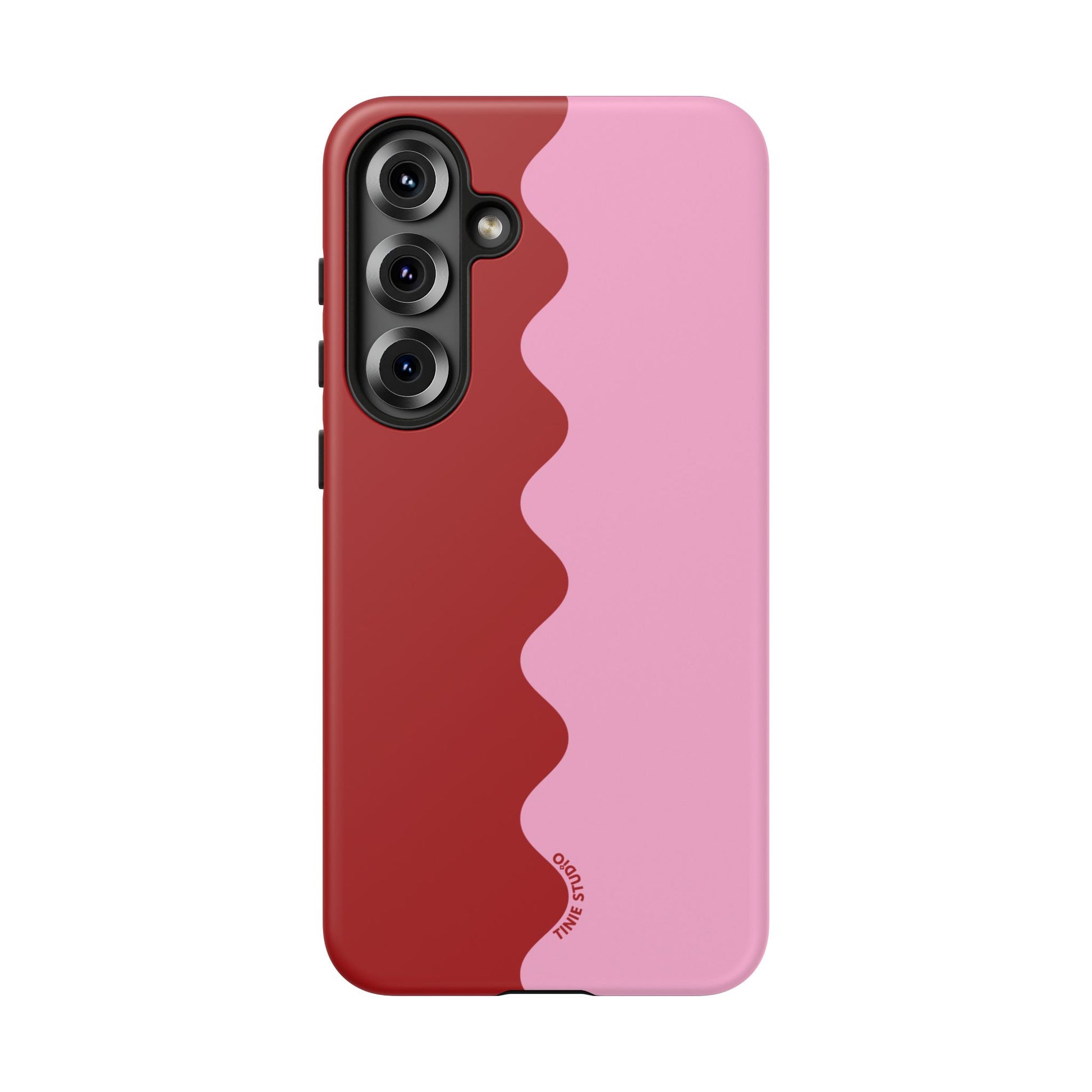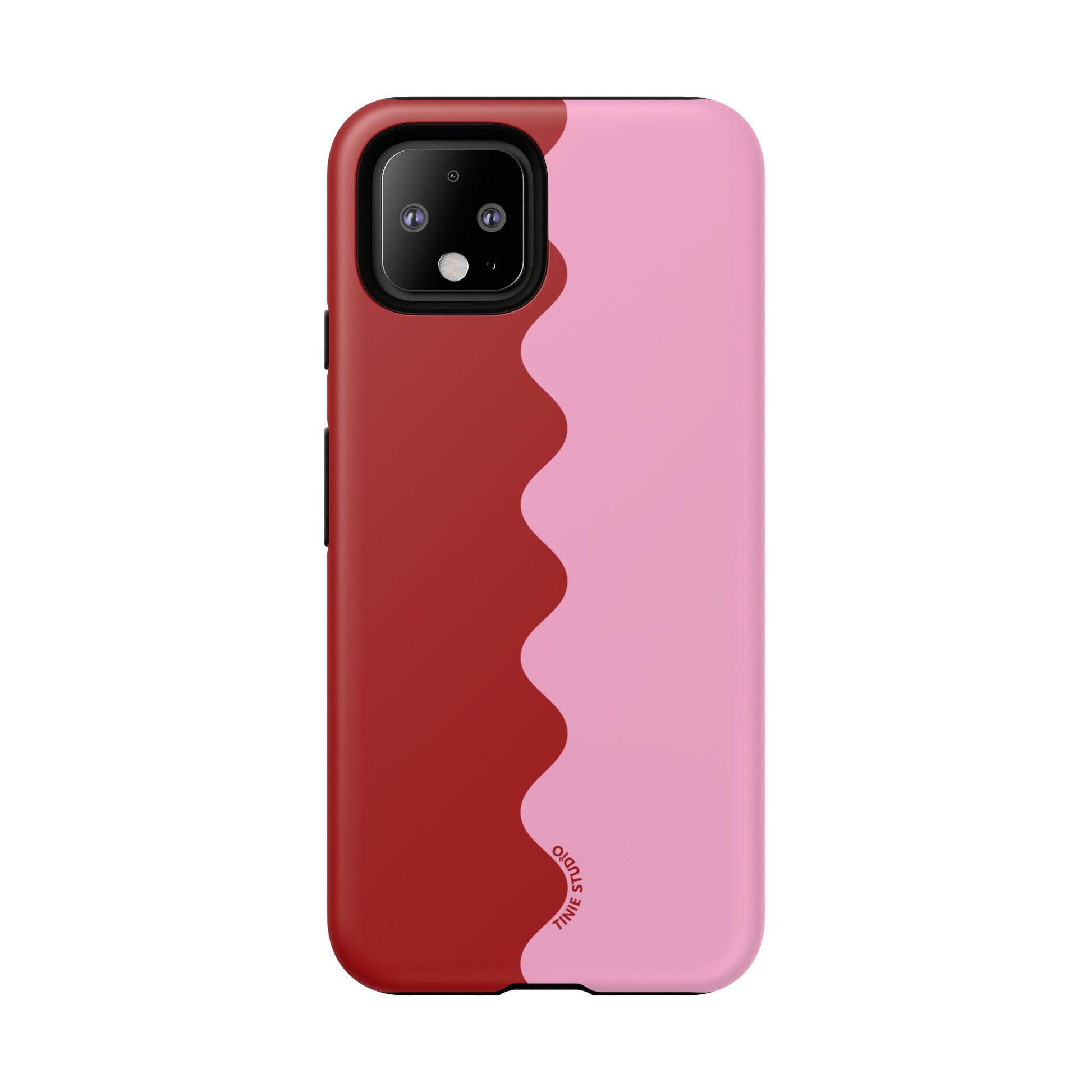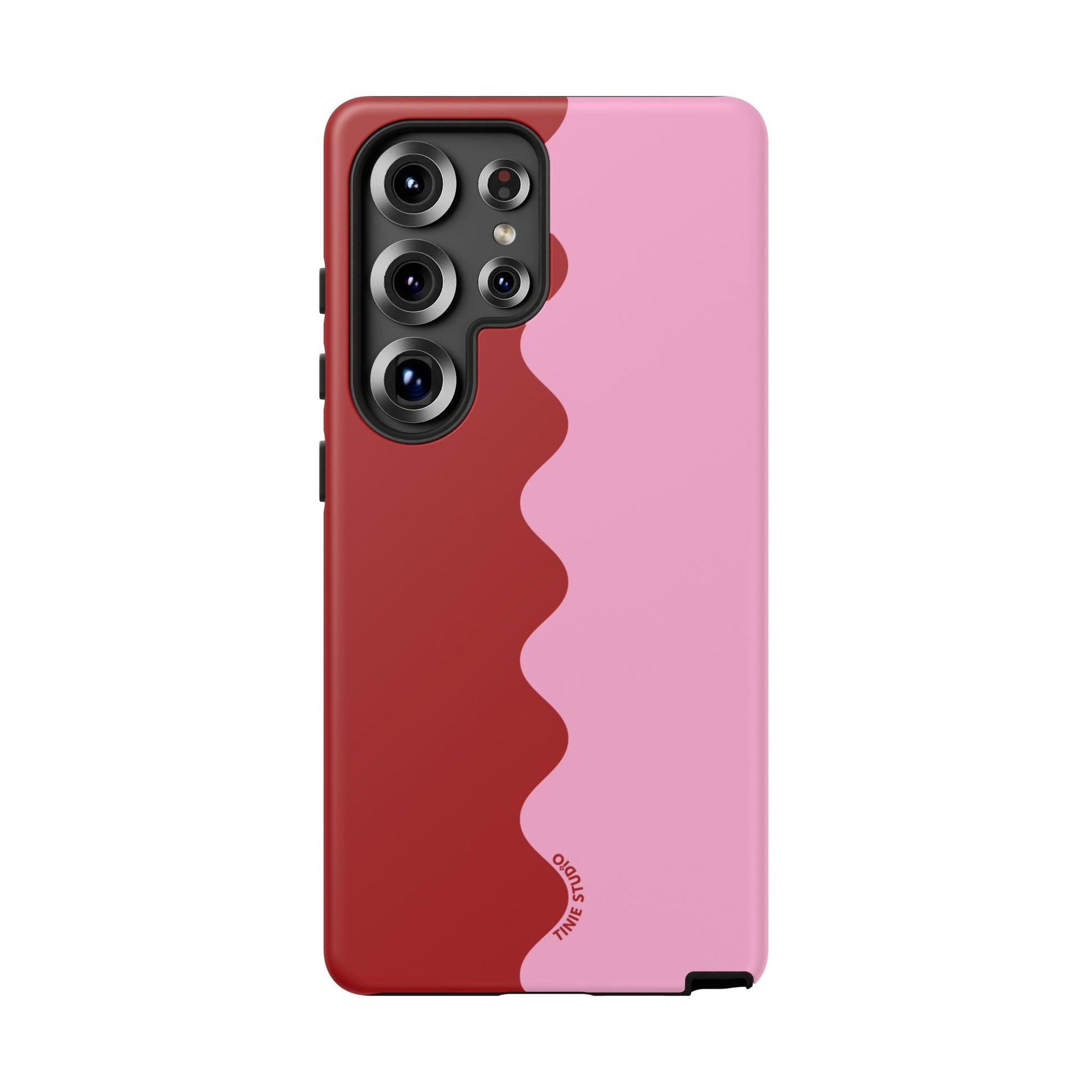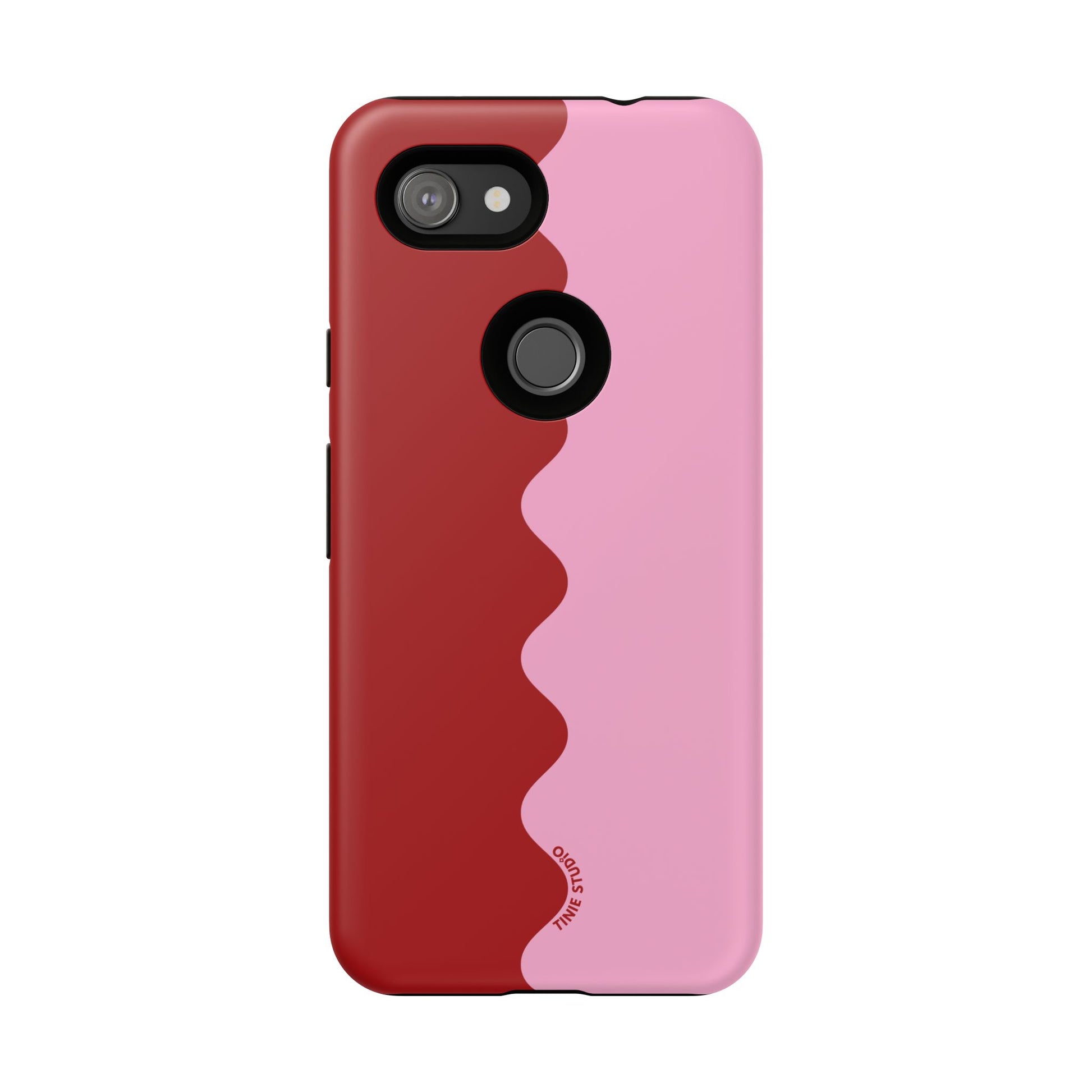 This design is all about contrast - rich red meets soft pink in a clean wave. No clutter, no noise, just confident colour, smooth lines and a high-end feel.